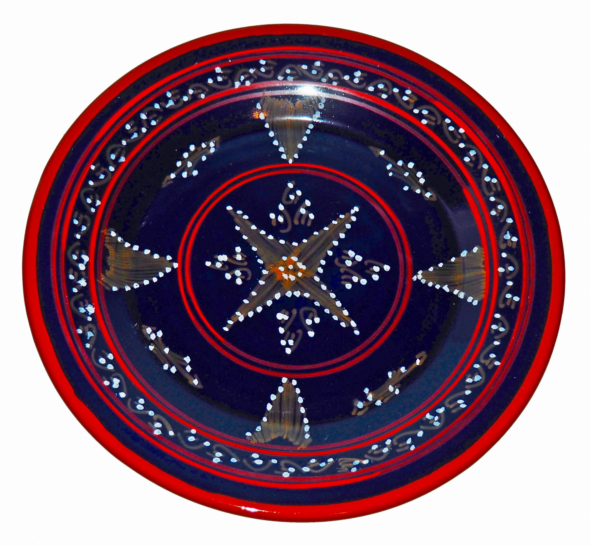 Ten orientalny talerz malowany jest w berberyjskie wzory. Przepiękna, niebanalna ozdoba Twojego stołu prosto z Tunezji.
