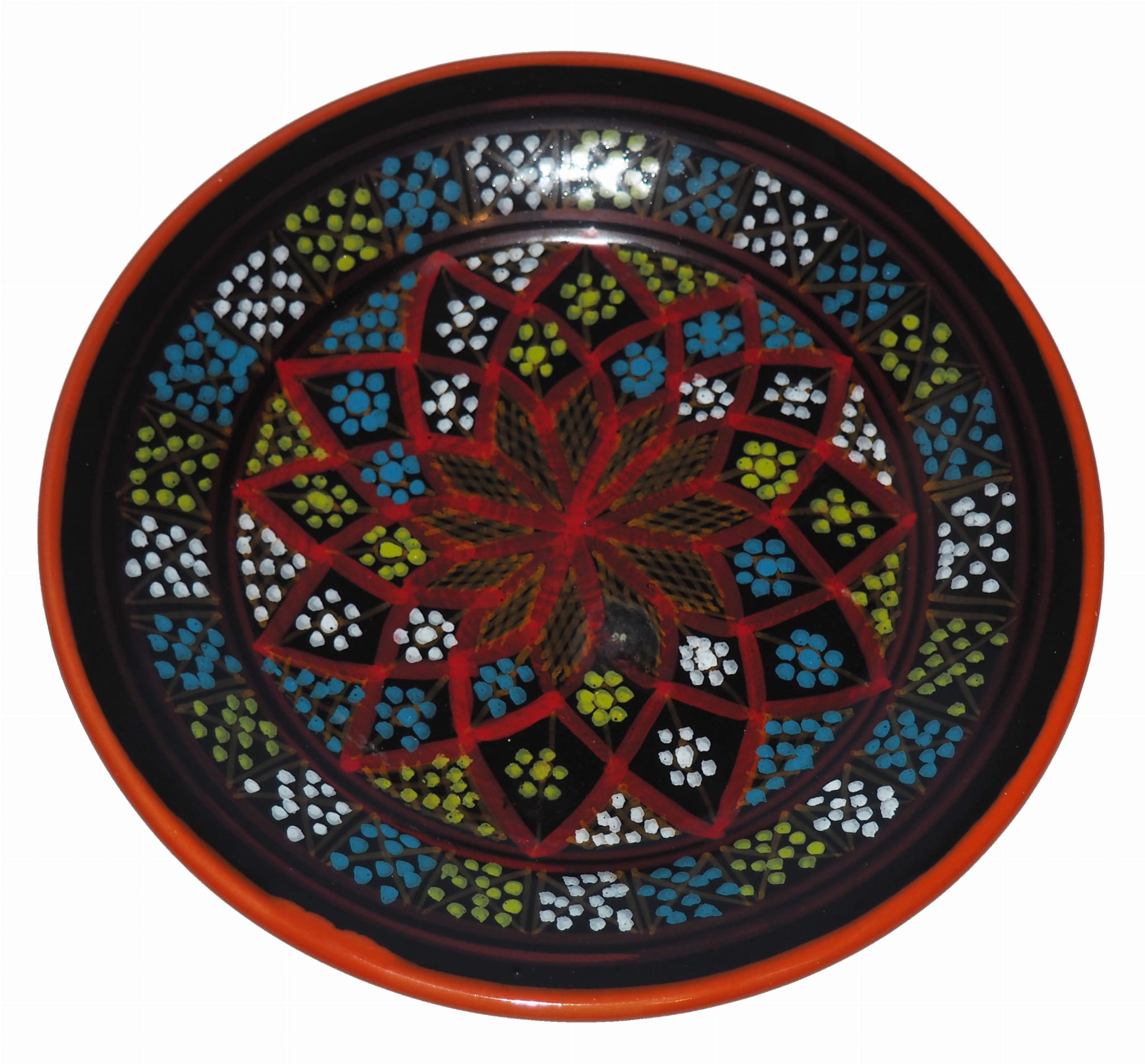 Ten orientalny talerz malowany jest w berberyjskie wzory. Przepiękna, niebanalna ozdoba Twojego stołu prosto z Tunezji.