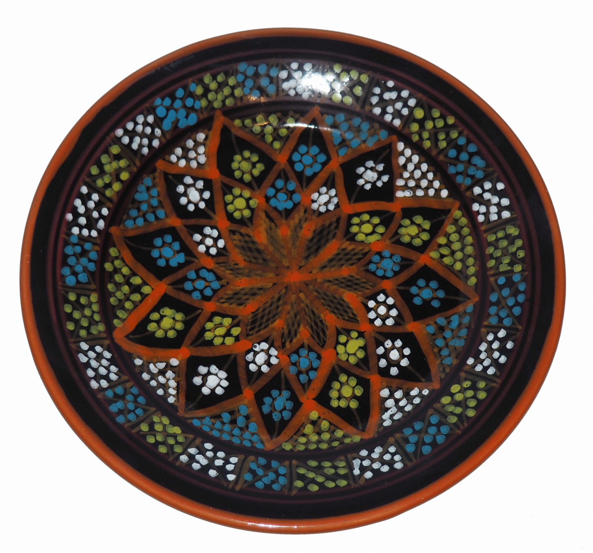 Ten orientalny talerz malowany jest w berberyjskie wzory. Przepiękna, niebanalna ozdoba Twojego stołu prosto z Tunezji.