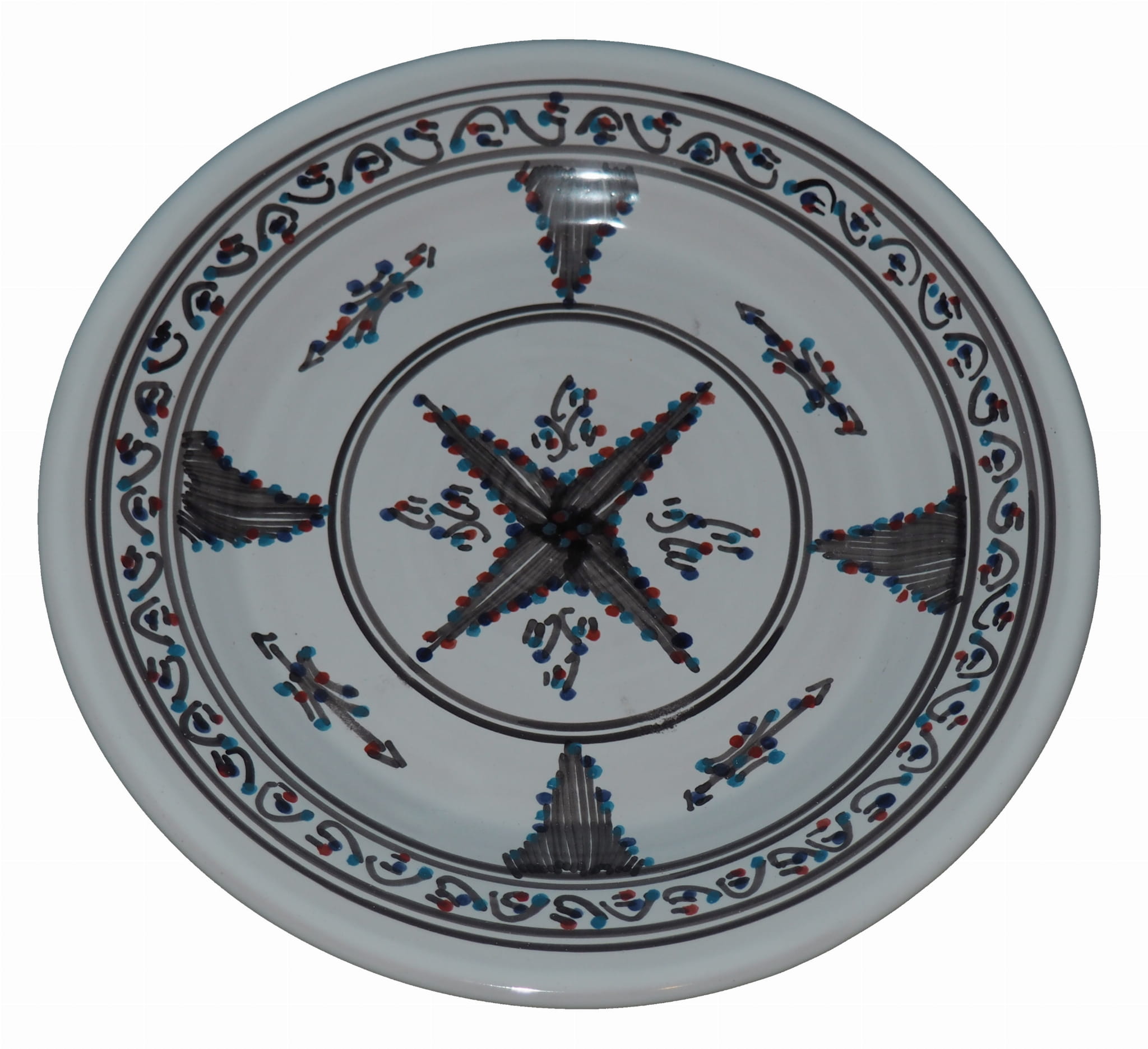 Ten orientalny talerz malowany jest w berberyjskie wzory. Przepiękna, niebanalna ozdoba Twojego stołu prosto z Tunezji.