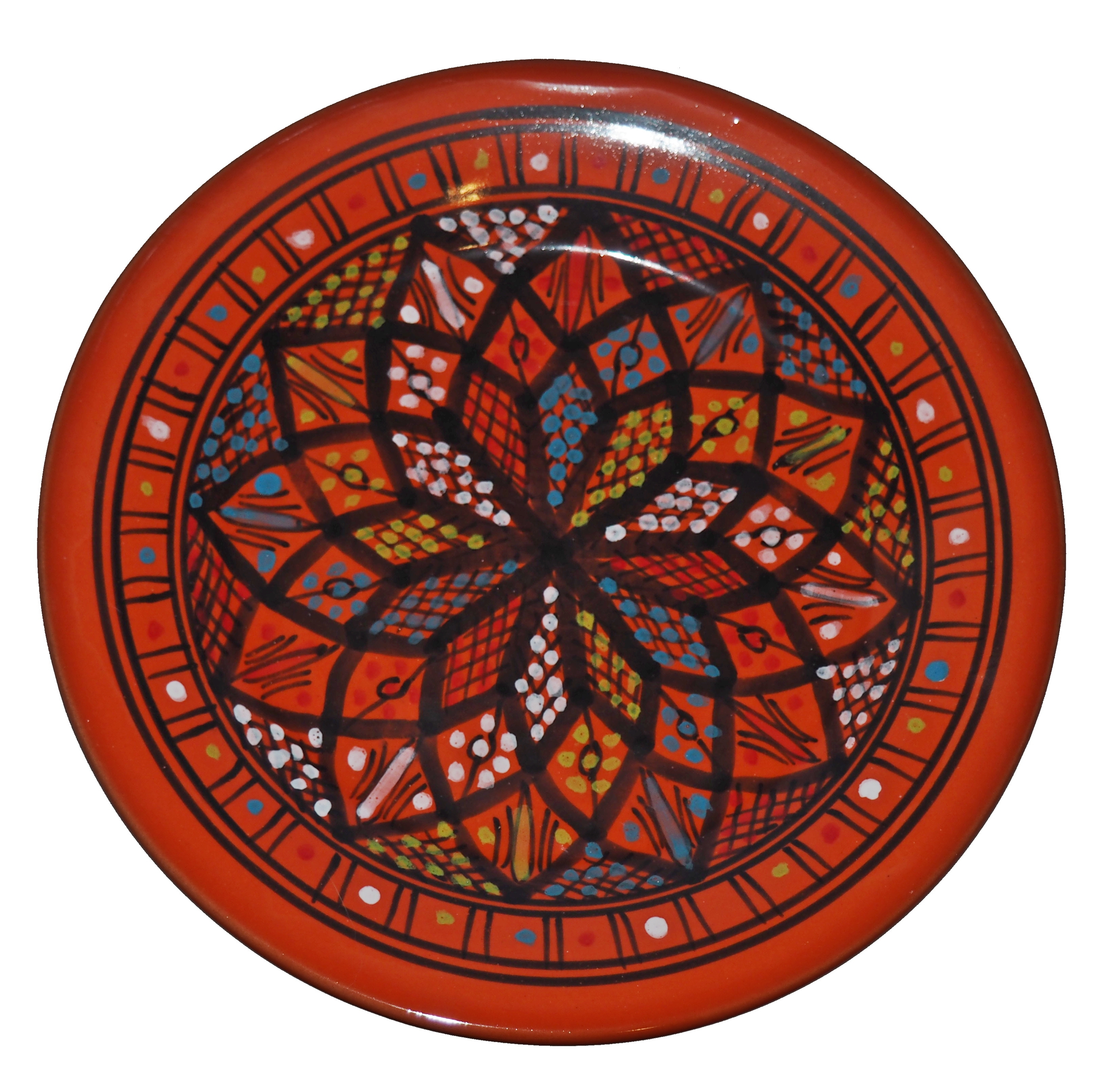 Ten orientalny talerz malowany jest w berberyjskie wzory. Przepiękna, niebanalna ozdoba Twojego stołu prosto z Tunezji.