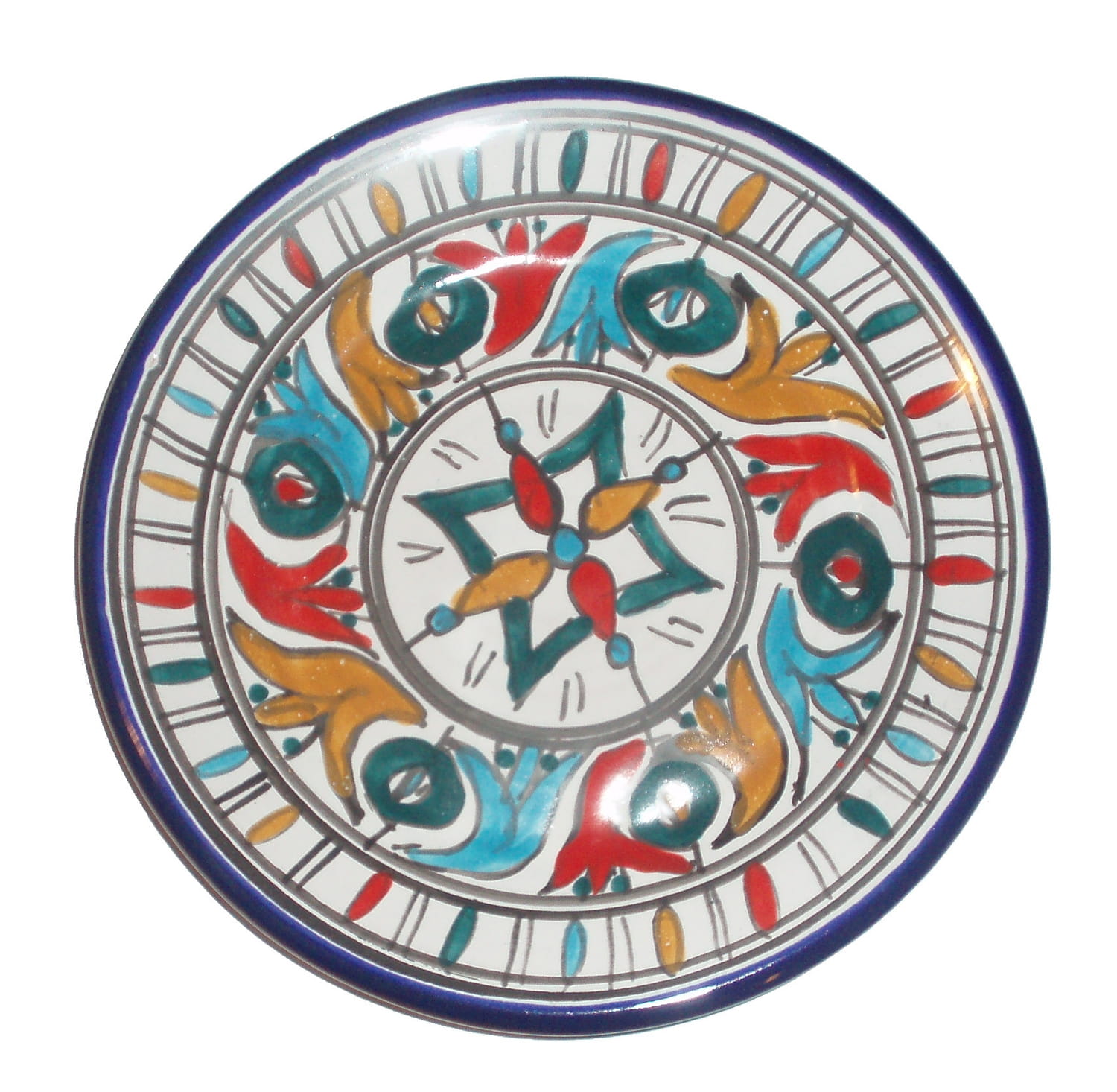 Ten orientalny talerz malowany jest w berberyjskie wzory. Przepiękna, niebanalna ozdoba Twojego stołu prosto z Tunezji.