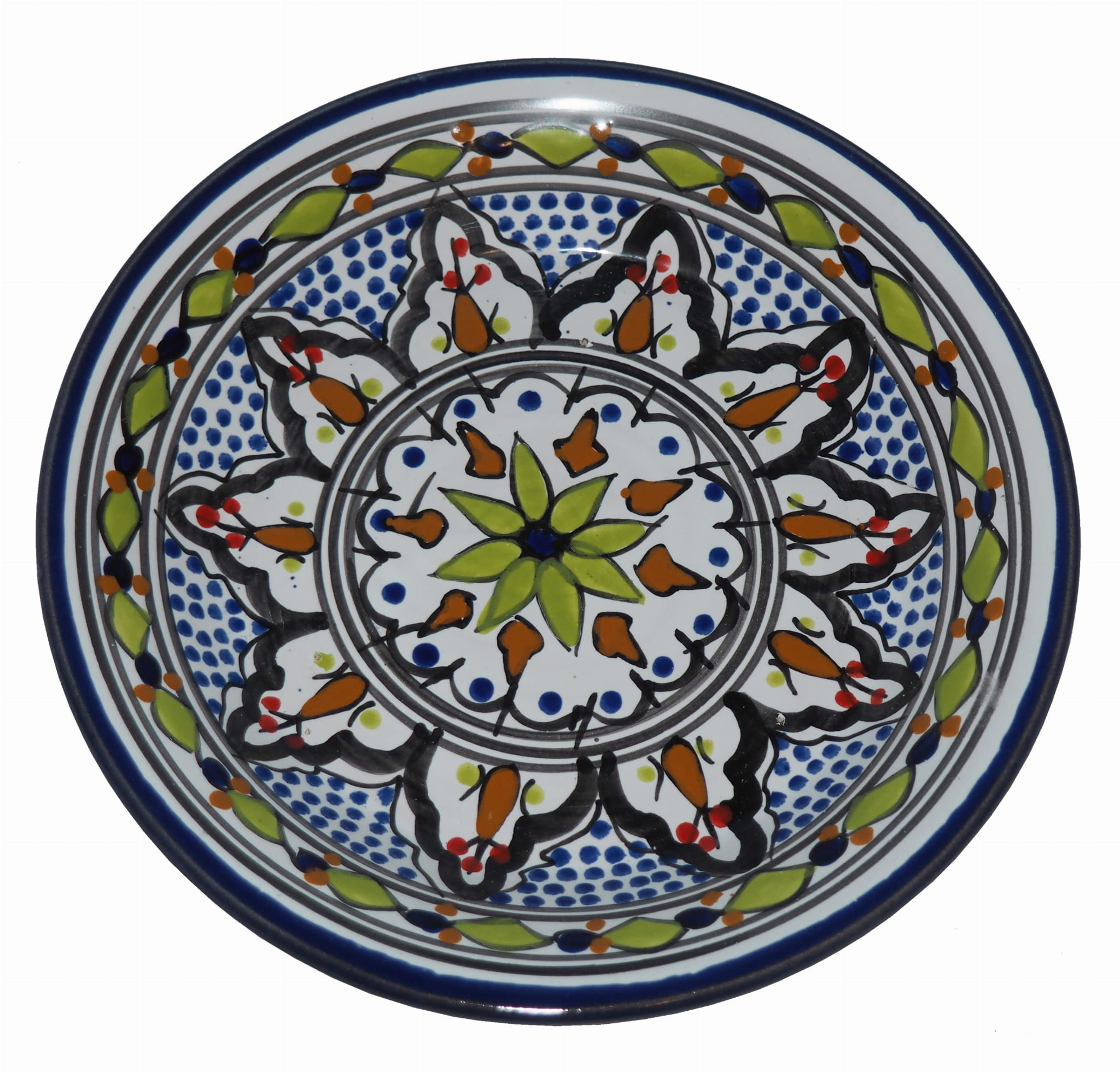 Ten orientalny talerz malowany jest w berberyjskie wzory. Przepiękna, niebanalna ozdoba Twojego stołu prosto z Tunezji.