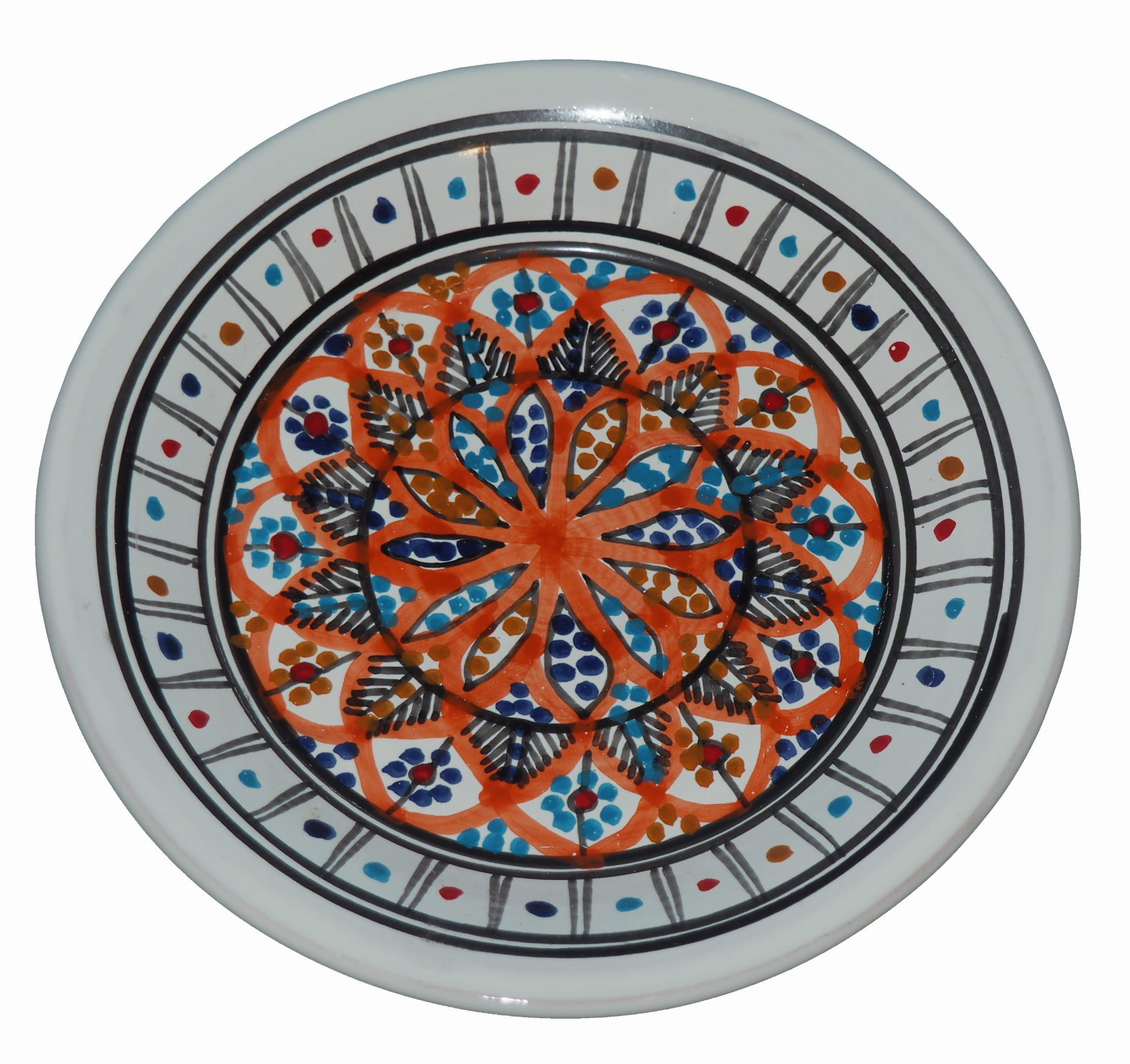 Ten orientalny talerz malowany jest w berberyjskie wzory. Przepiękna, niebanalna ozdoba Twojego stołu prosto z Tunezji.
