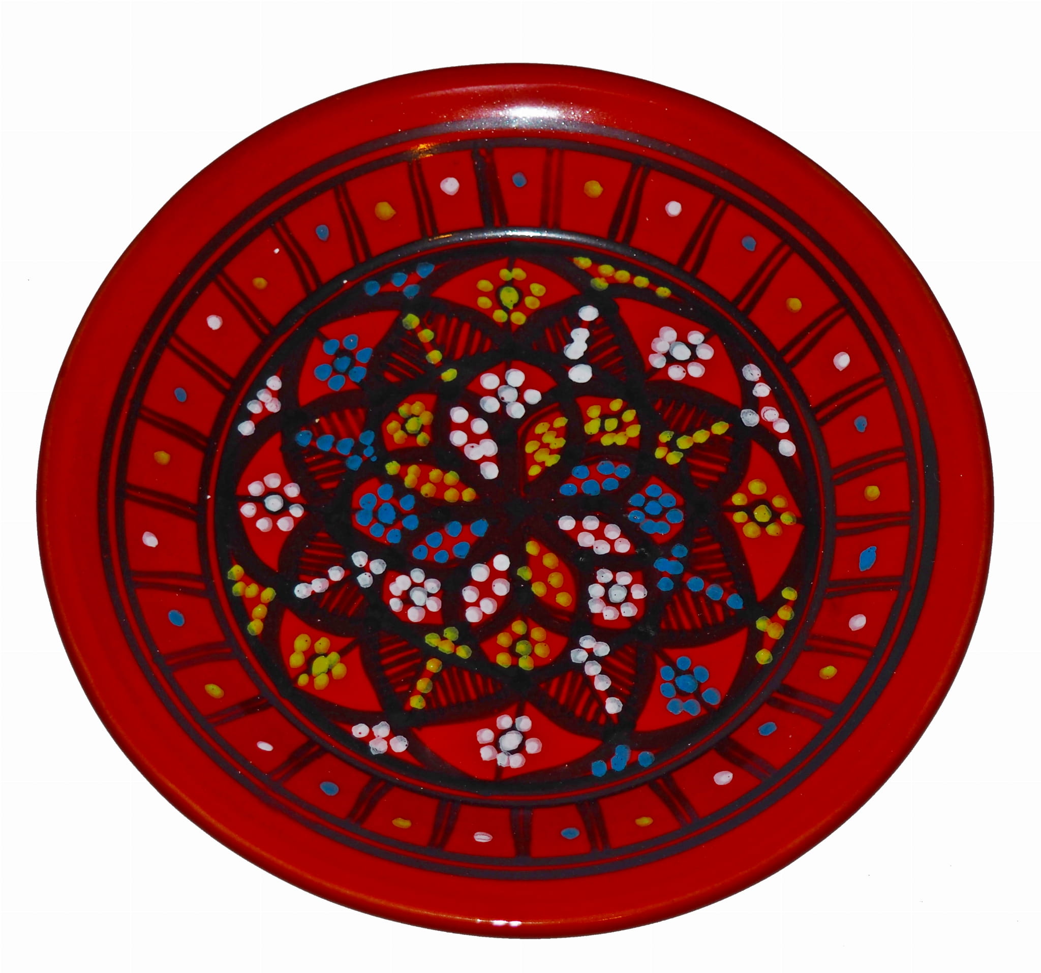 Ten orientalny talerz malowany jest w berberyjskie wzory. Przepiękna, niebanalna ozdoba Twojego stołu prosto z Tunezji.