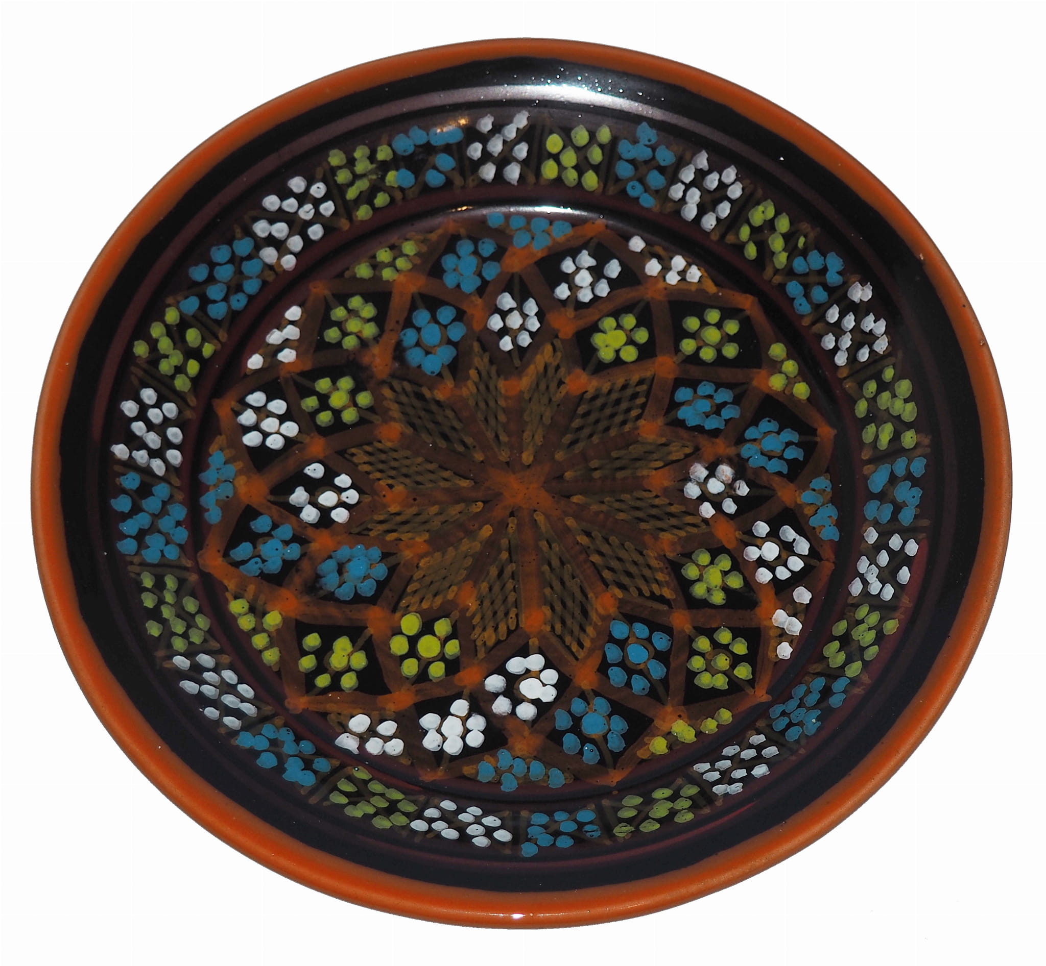 Ten orientalny talerz malowany jest w berberyjskie wzory. Przepiękna, niebanalna ozdoba Twojego stołu prosto z Tunezji.