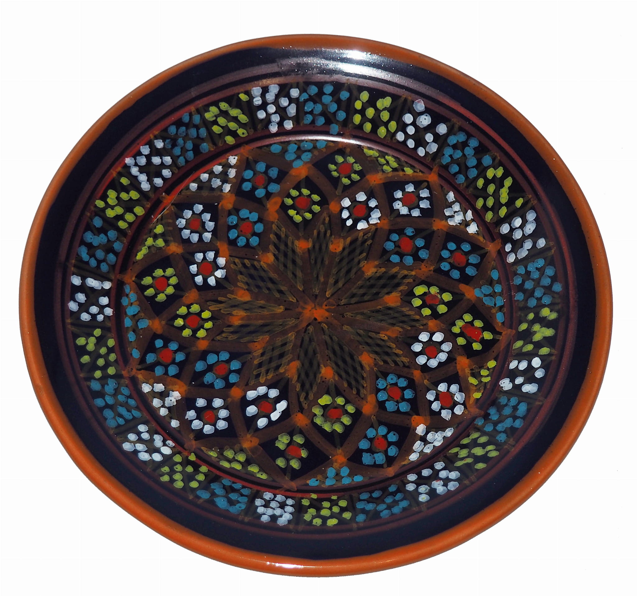 Ten orientalny talerz malowany jest w berberyjskie wzory. Przepiękna, niebanalna ozdoba Twojego stołu prosto z Tunezji.