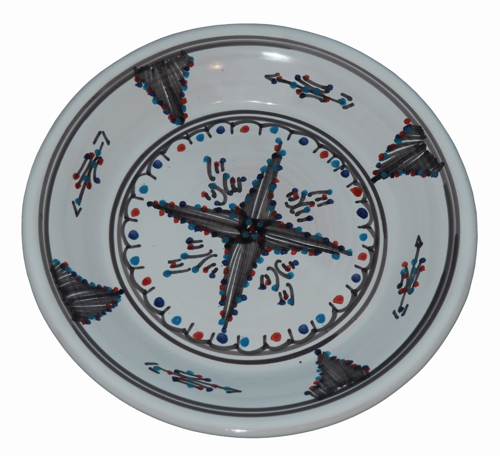 Ten orientalny talerz malowany jest w berberyjskie wzory. Przepiękna, niebanalna ozdoba Twojego stołu prosto z Tunezji.