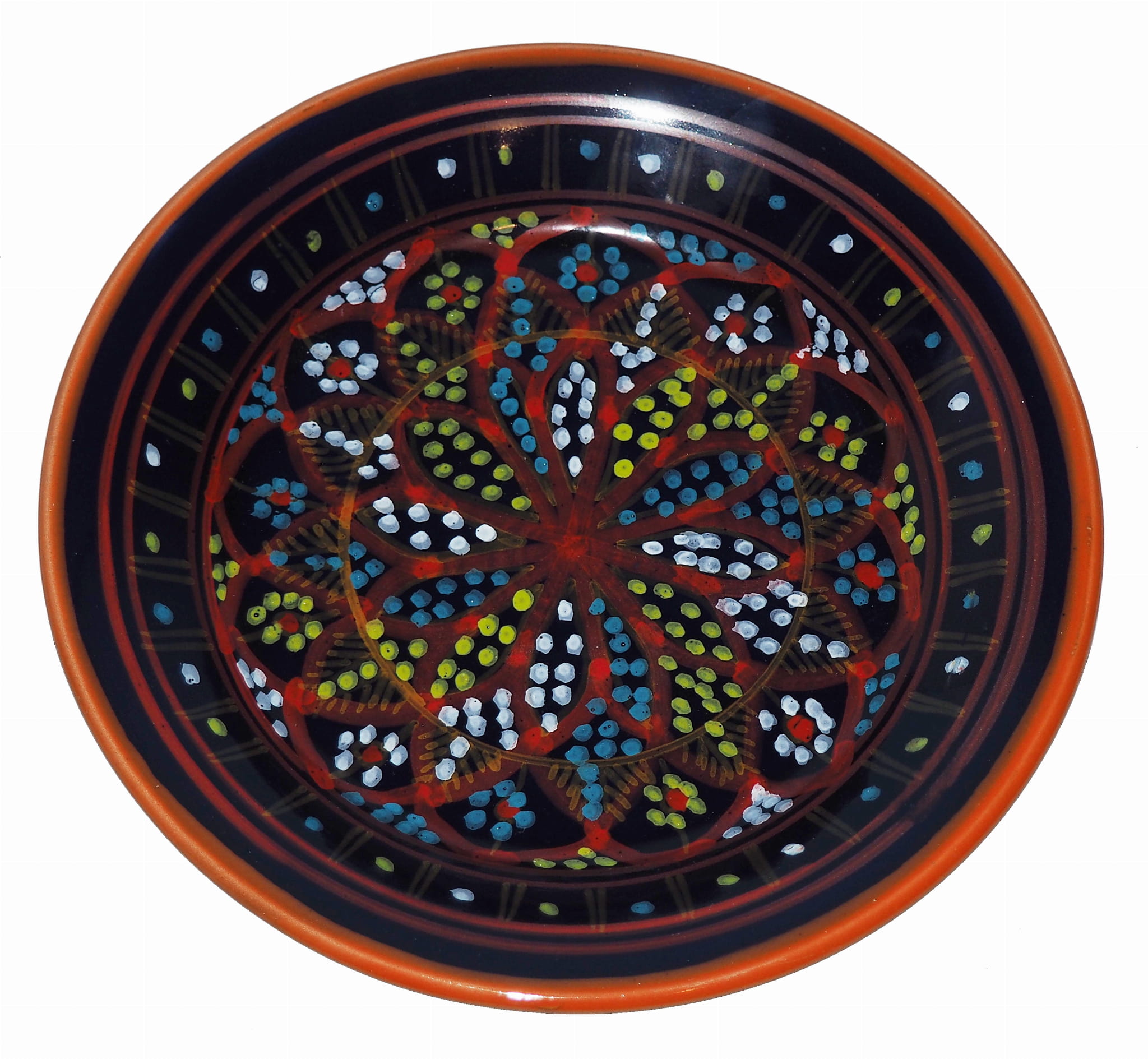 Ten orientalny talerz malowany jest w berberyjskie wzory. Przepiękna, niebanalna ozdoba Twojego stołu prosto z Tunezji.