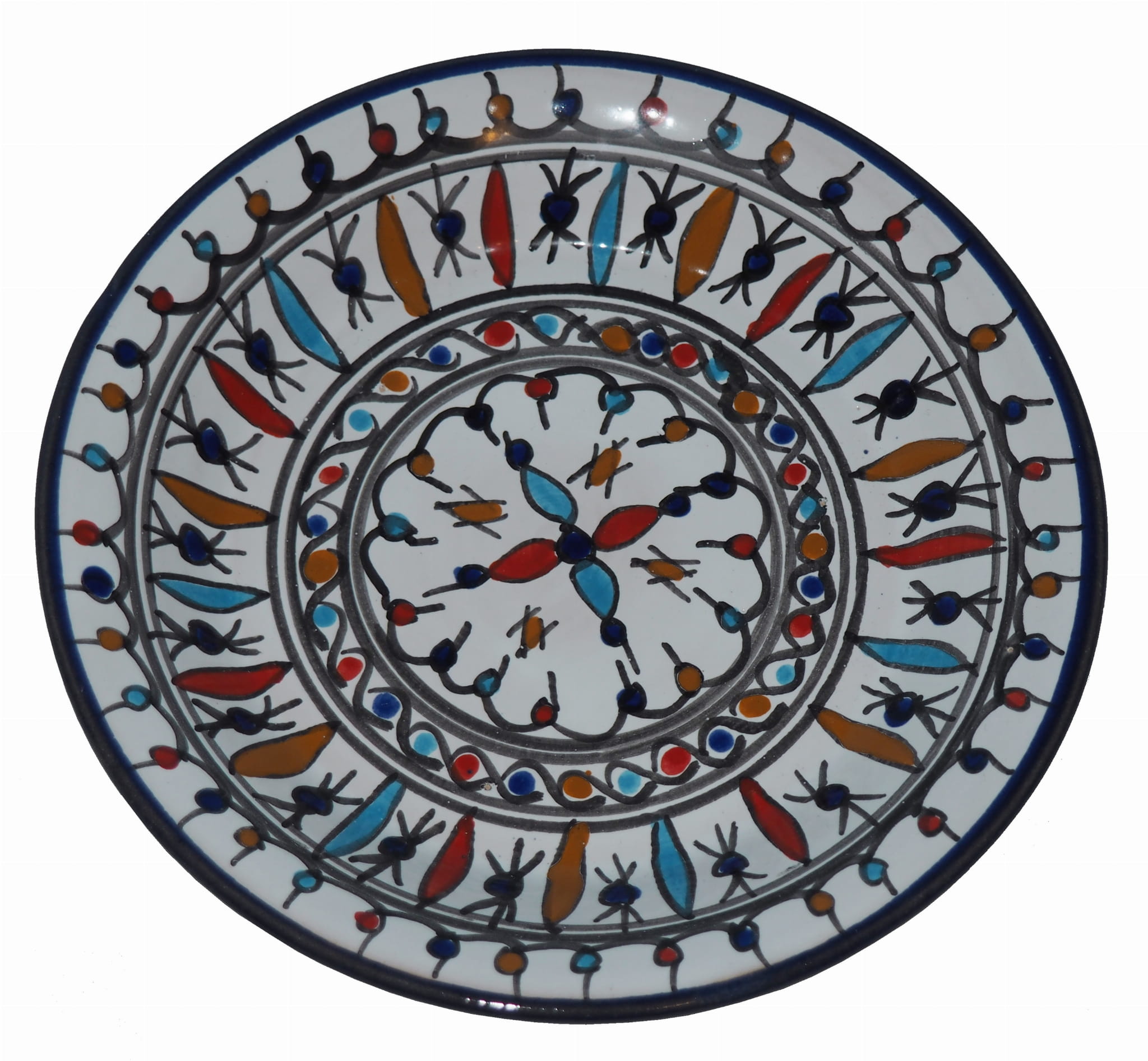 Ten orientalny talerz malowany jest w berberyjskie wzory. Przepiękna, niebanalna ozdoba Twojego stołu prosto z Tunezji.