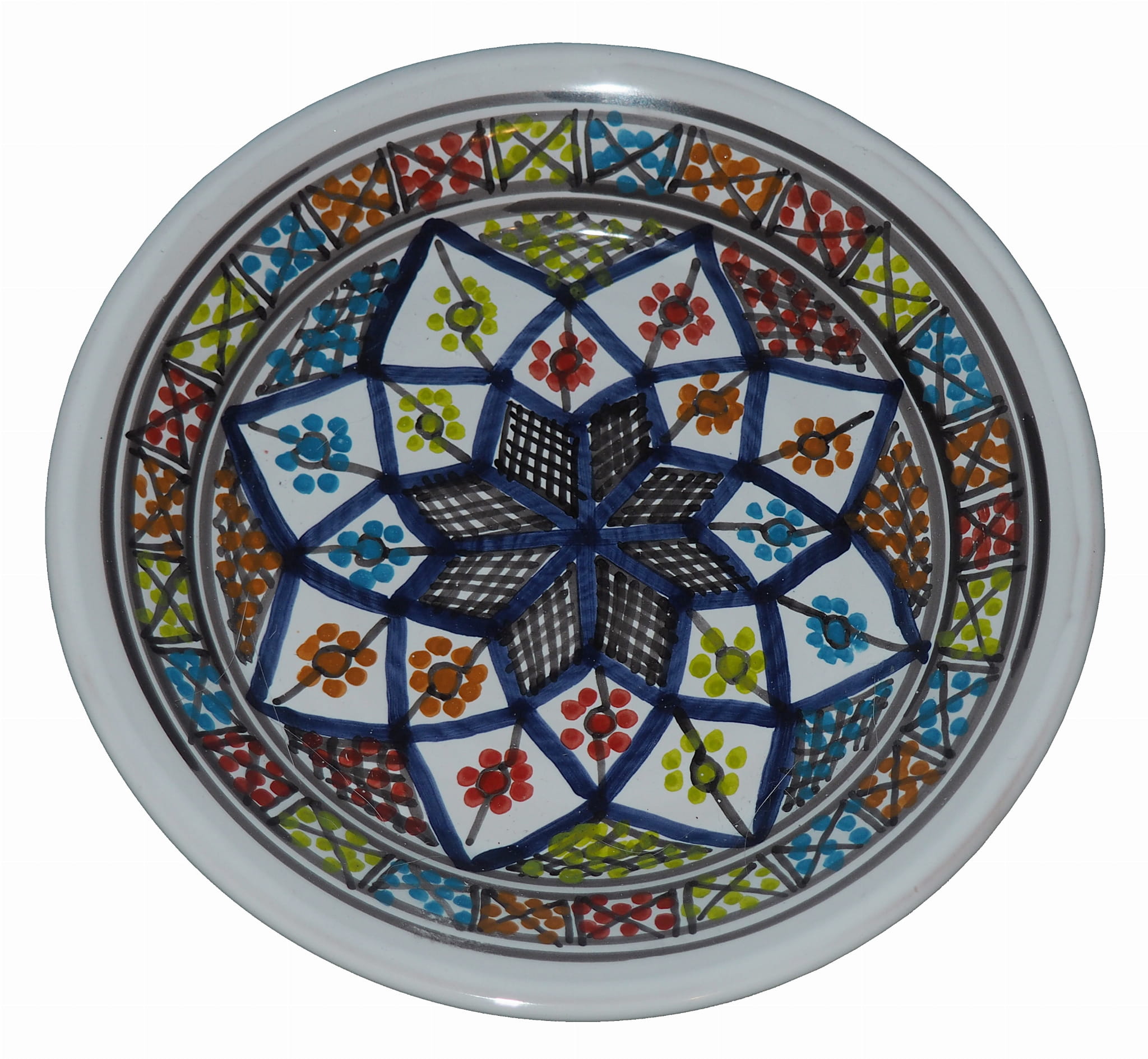 Ten orientalny talerz malowany jest w berberyjskie wzory. Przepiękna, niebanalna ozdoba Twojego stołu prosto z Tunezji.