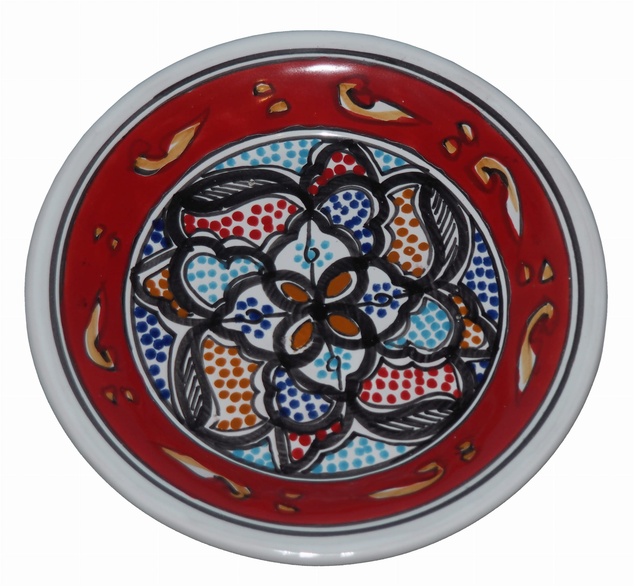 Ten orientalny talerz malowany jest w berberyjskie wzory. Przepiękna, niebanalna ozdoba Twojego stołu prosto z Tunezji.