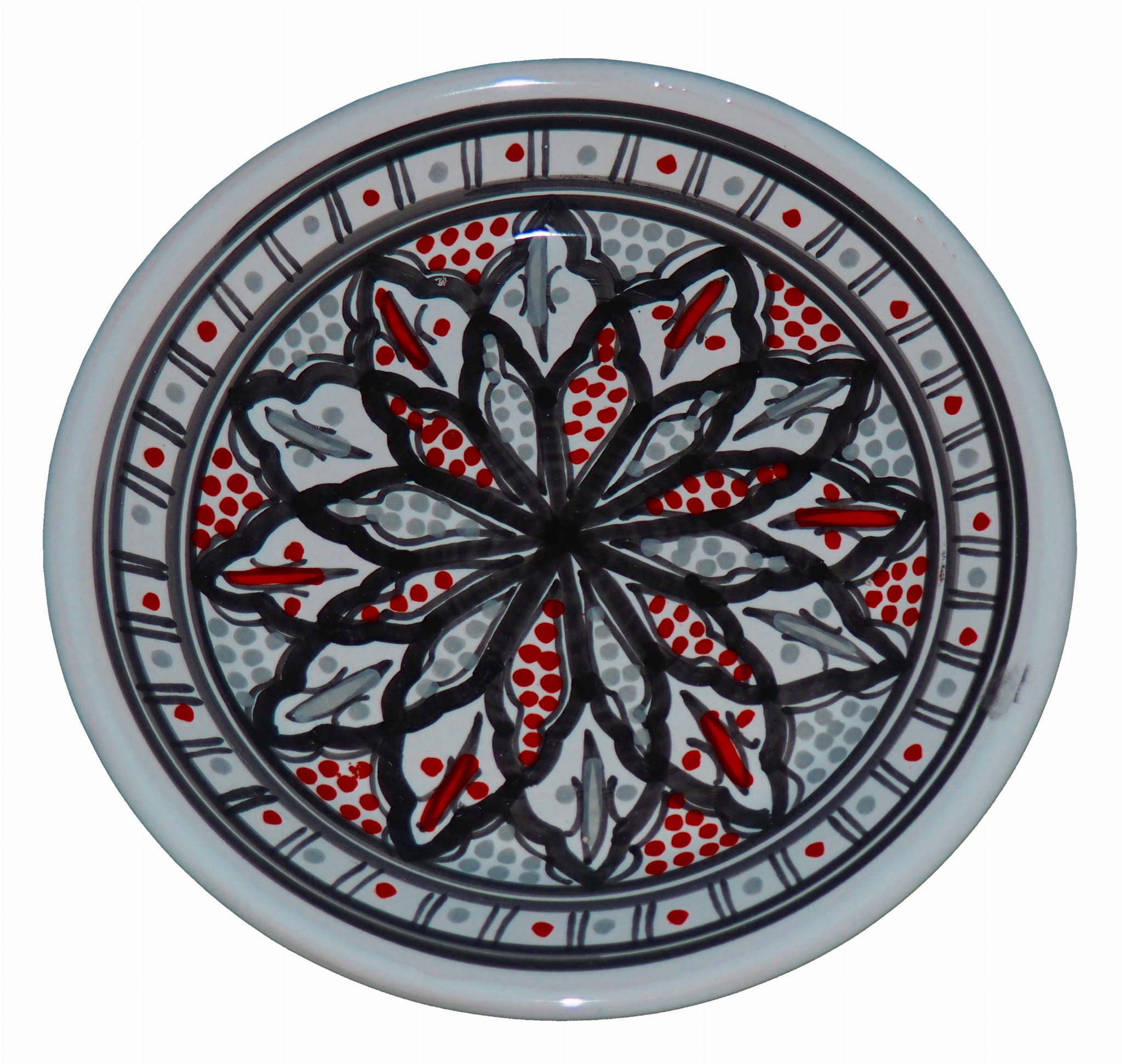 Ten orientalny talerz malowany jest w berberyjskie wzory. Przepiękna, niebanalna ozdoba Twojego stołu prosto z Tunezji.