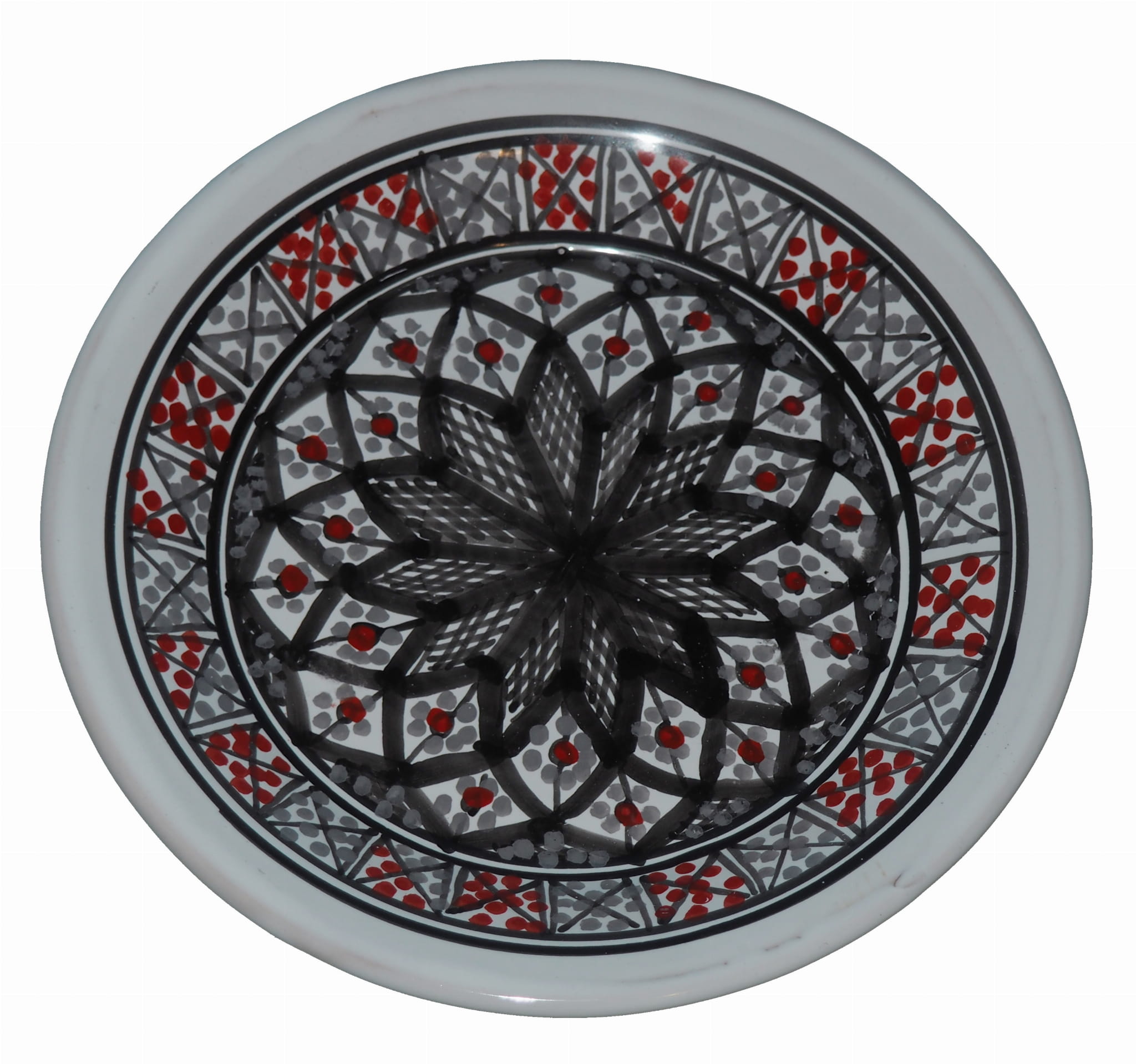Ten orientalny talerz malowany jest w berberyjskie wzory. Przepiękna, niebanalna ozdoba Twojego stołu prosto z Tunezji.