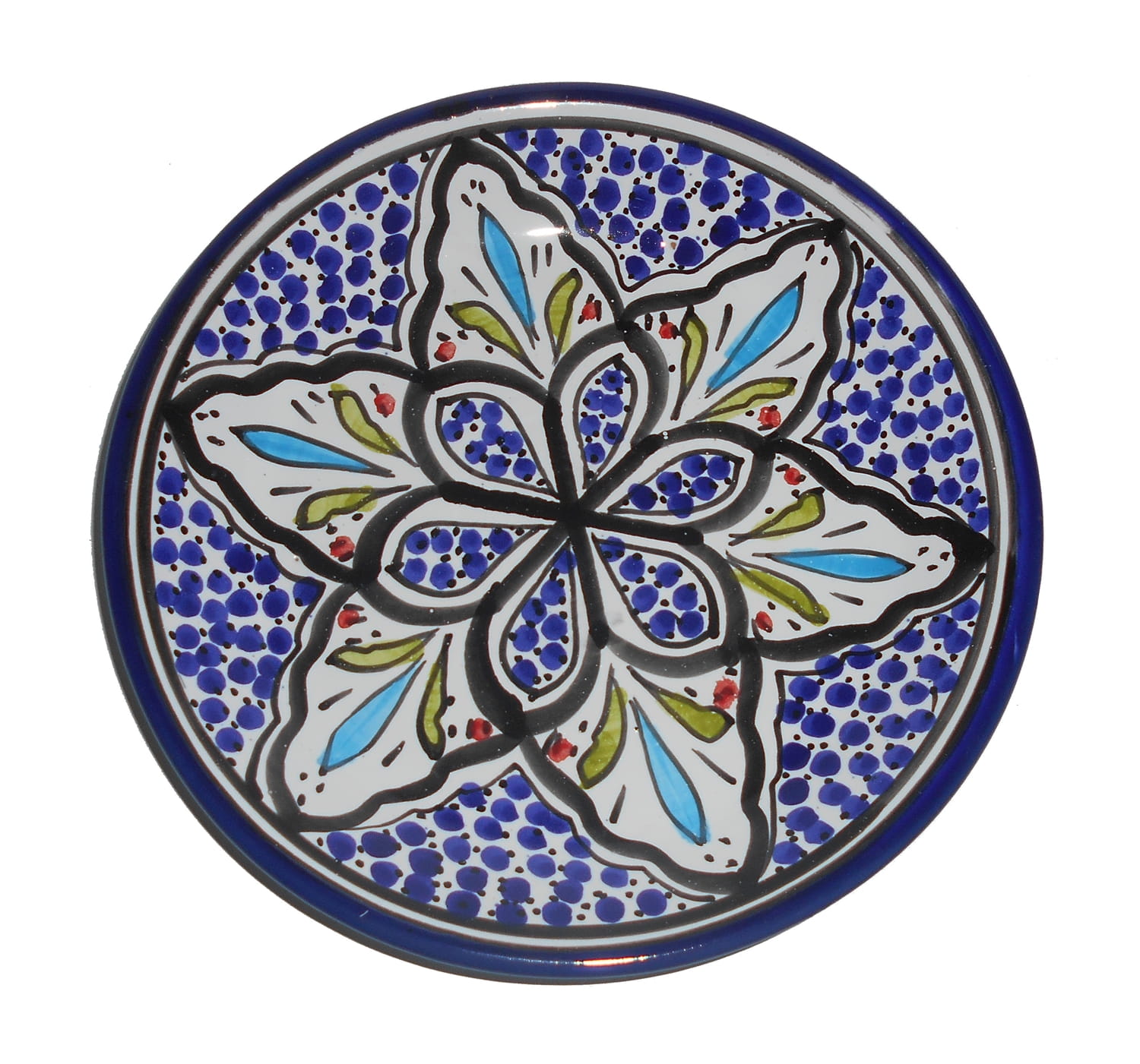 Ten orientalny talerz malowany jest w berberyjskie wzory. Przepiękna, niebanalna ozdoba Twojego stołu prosto z Tunezji.
