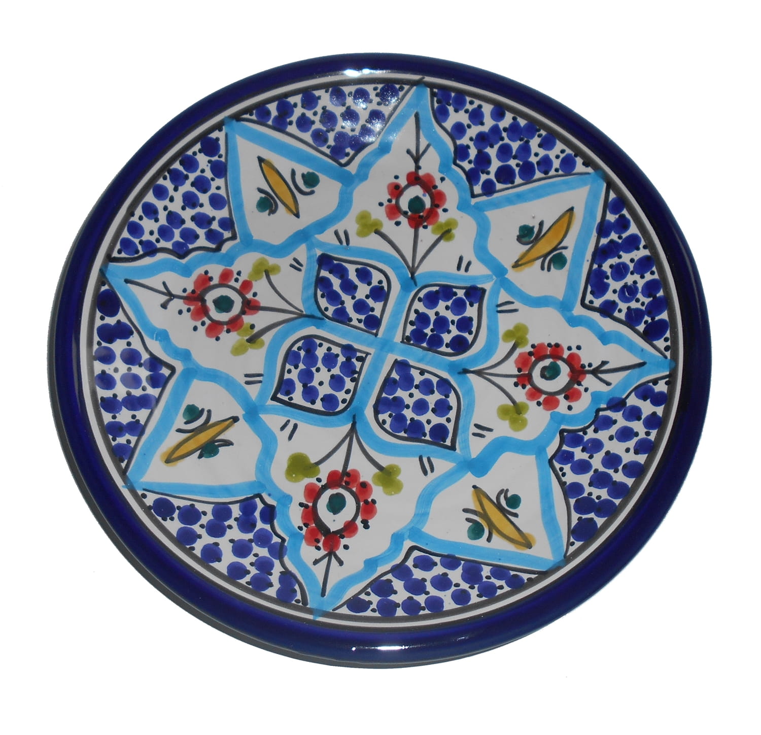 Ten orientalny talerz malowany jest w berberyjskie wzory. Przepiękna, niebanalna ozdoba Twojego stołu prosto z Tunezji.