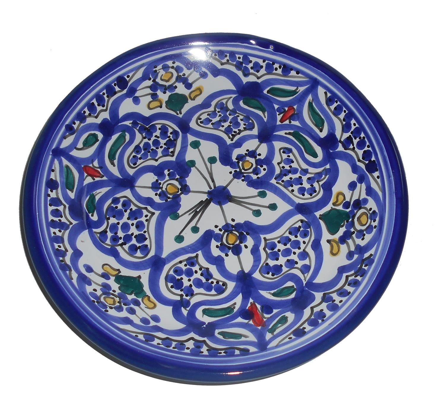 Ten orientalny talerz malowany jest w berberyjskie wzory. Przepiękna, niebanalna ozdoba Twojego stołu prosto z Tunezji.