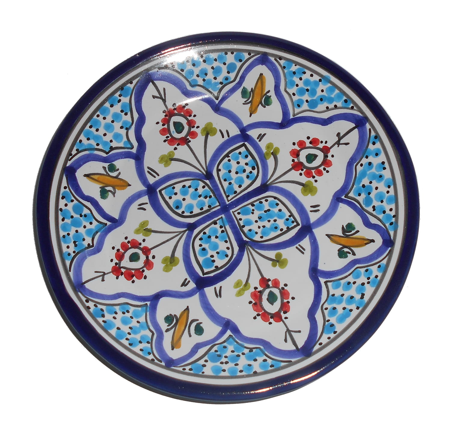 Ten orientalny talerz malowany jest w berberyjskie wzory. Przepiękna, niebanalna ozdoba Twojego stołu prosto z Tunezji.