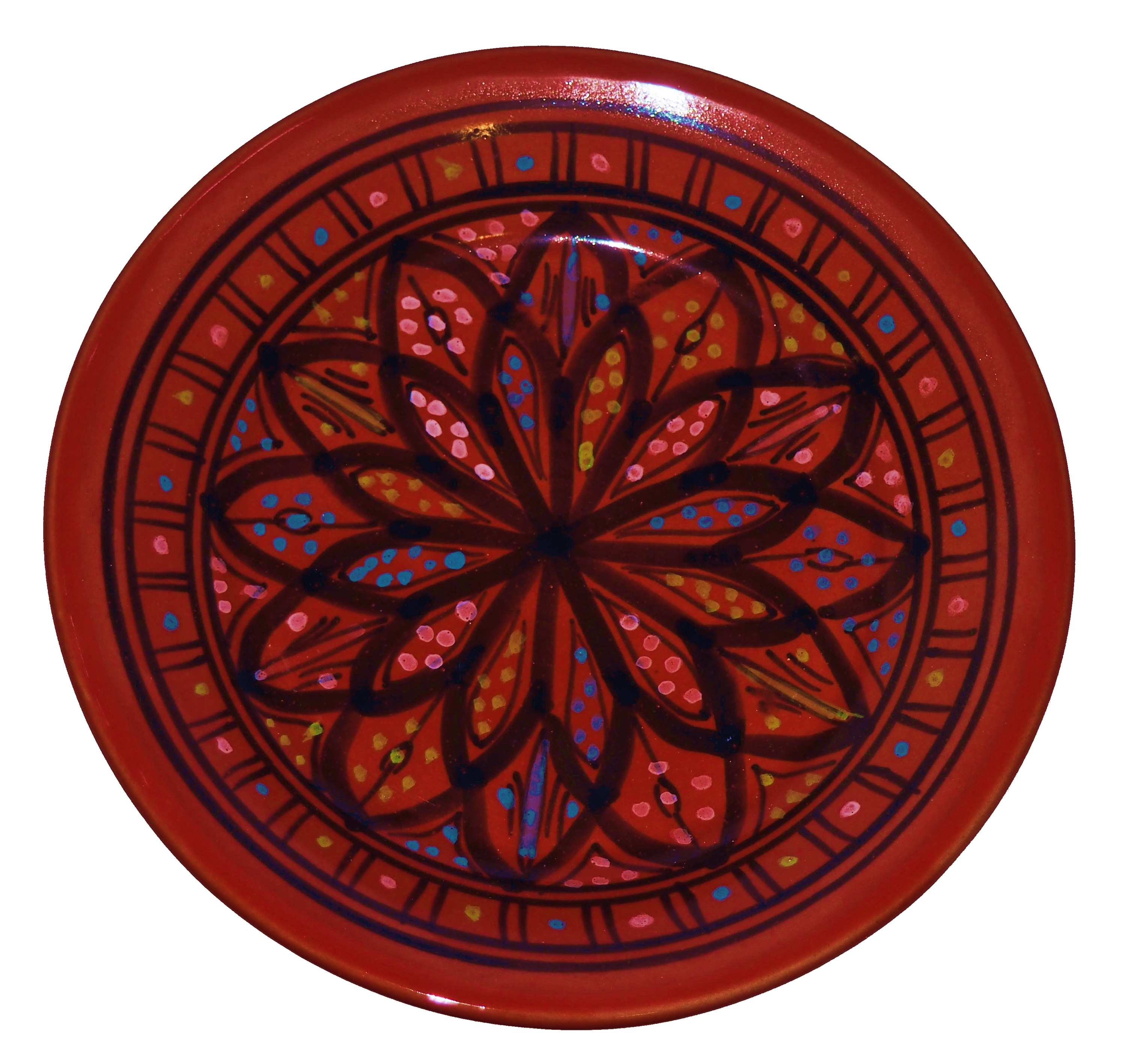 Ten orientalny talerz malowany jest w berberyjskie wzory. Przepiękna, niebanalna ozdoba Twojego stołu prosto z Tunezji.