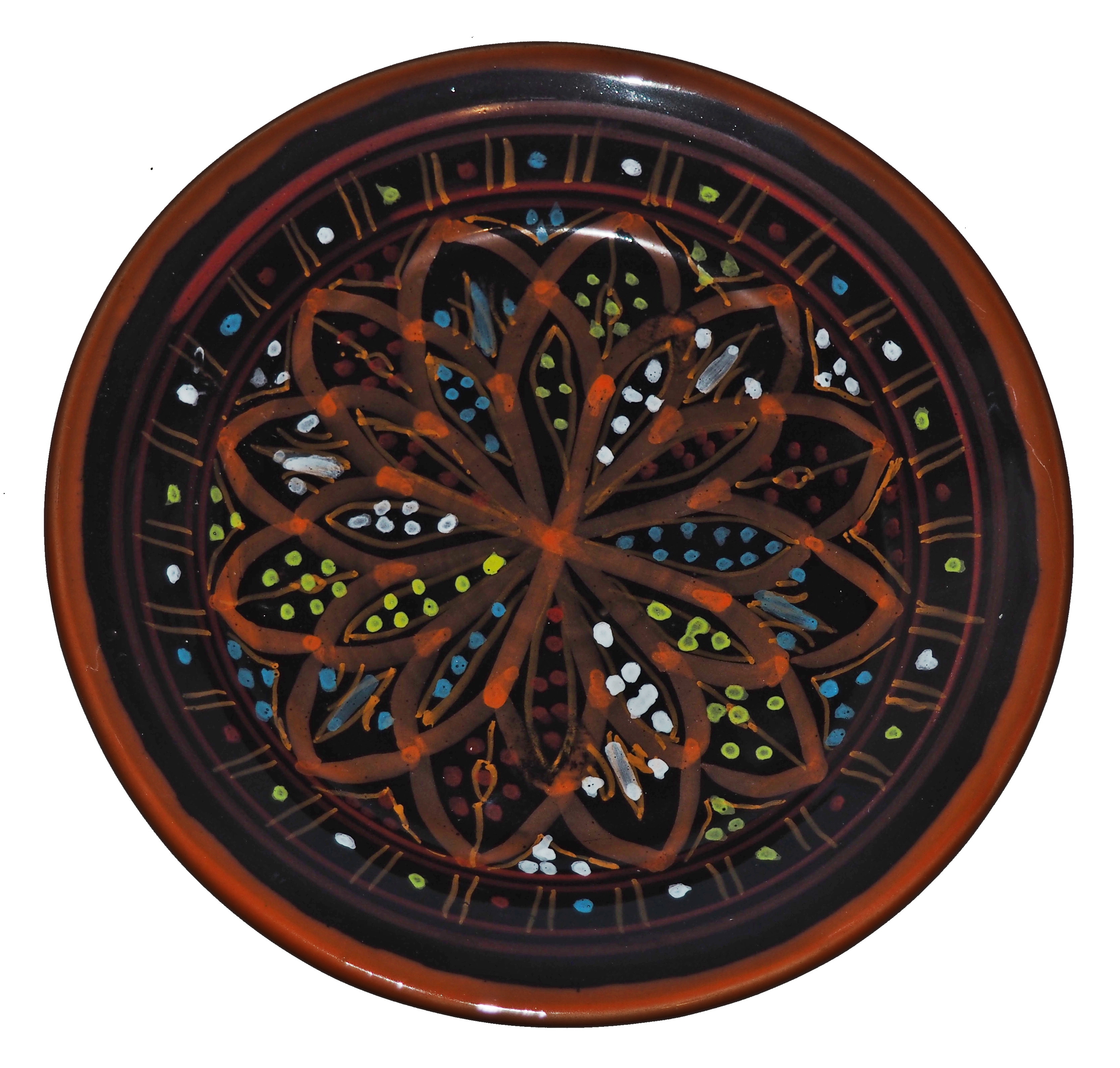 Ten orientalny talerz malowany jest w berberyjskie wzory. Przepiękna, niebanalna ozdoba Twojego stołu prosto z Tunezji.