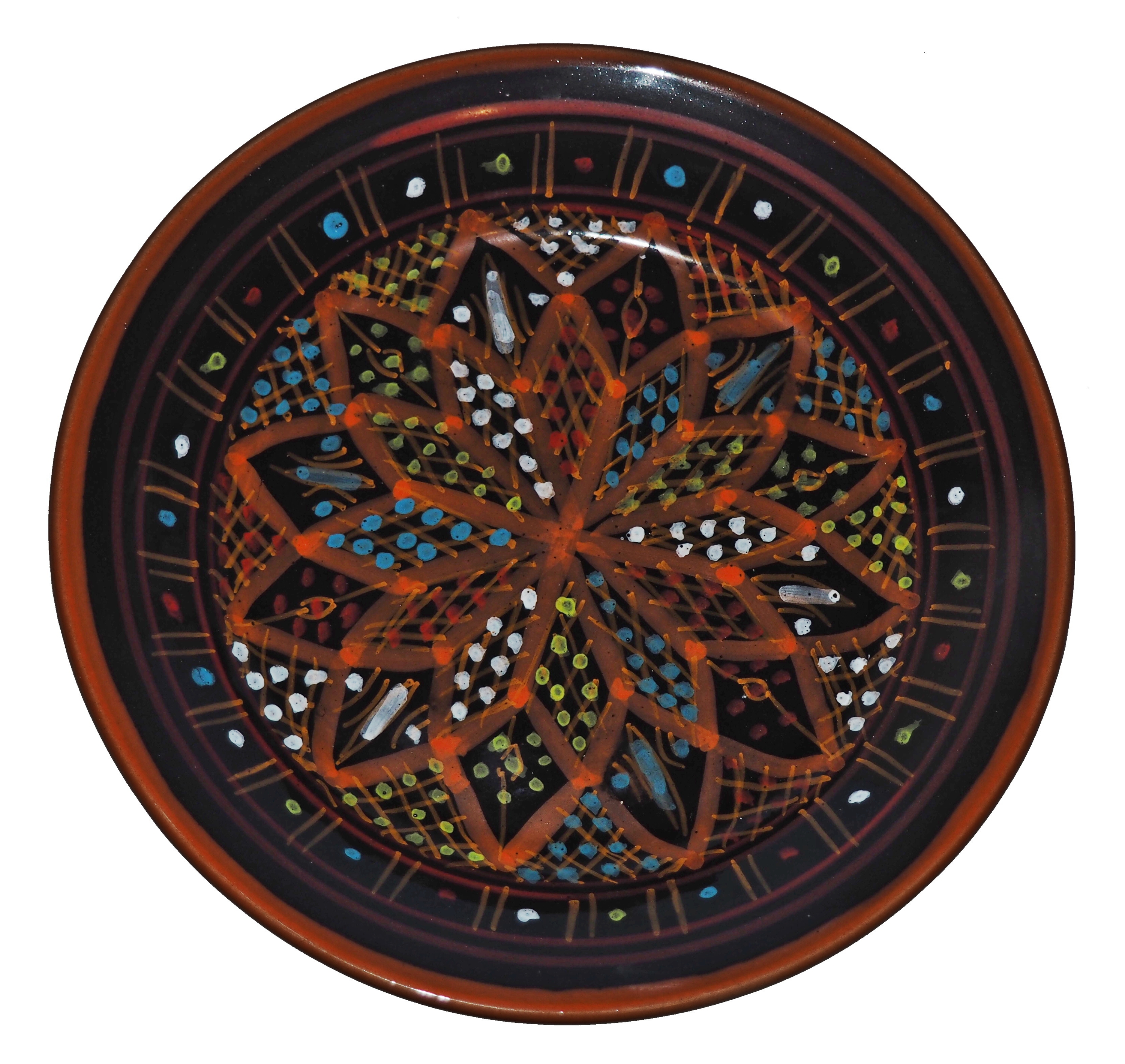 Ten orientalny talerz malowany jest w berberyjskie wzory. Przepiękna, niebanalna ozdoba Twojego stołu prosto z Tunezji.