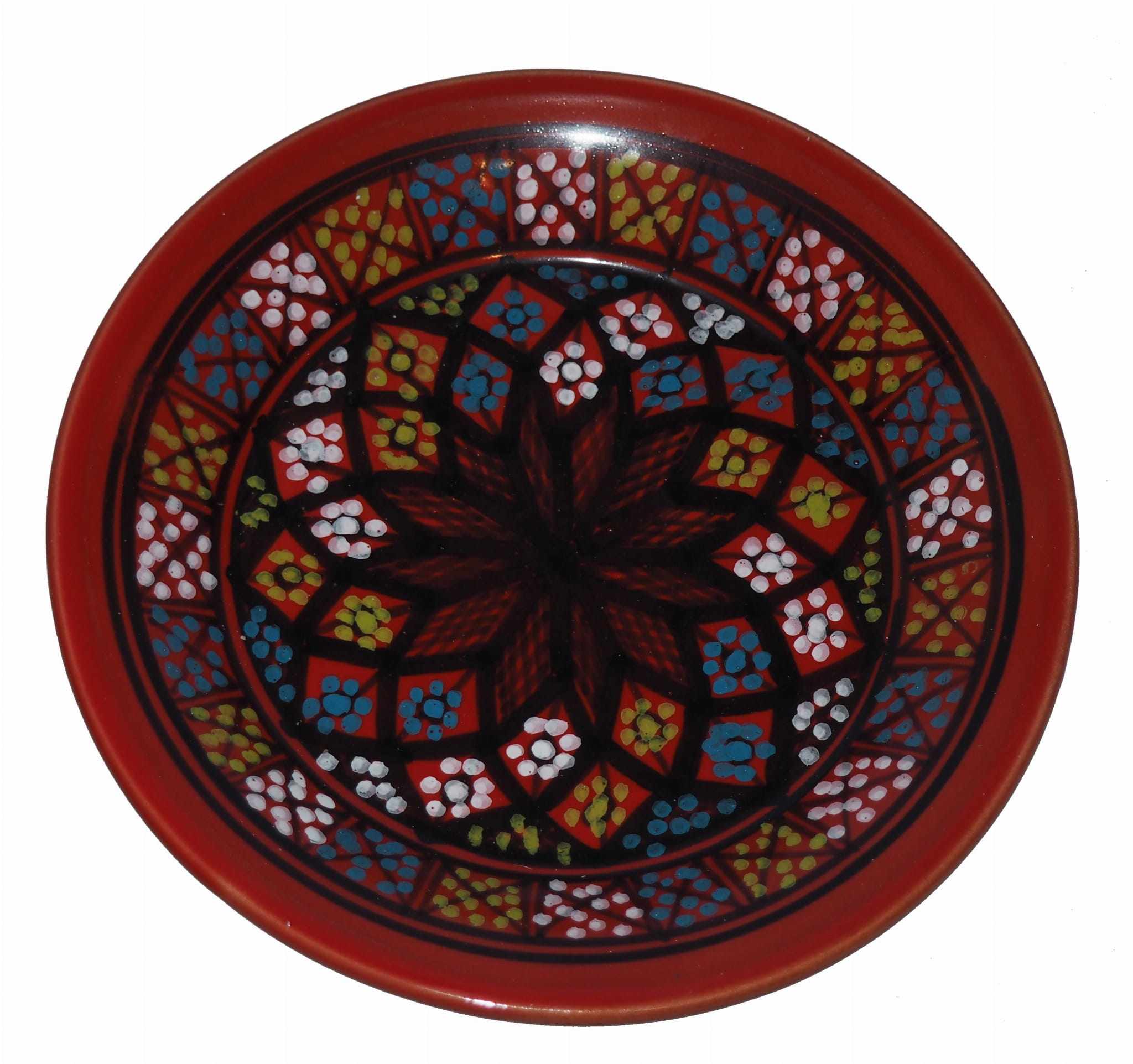 Ten orientalny talerz malowany jest w berberyjskie wzory. Przepiękna, niebanalna ozdoba Twojego stołu prosto z Tunezji.