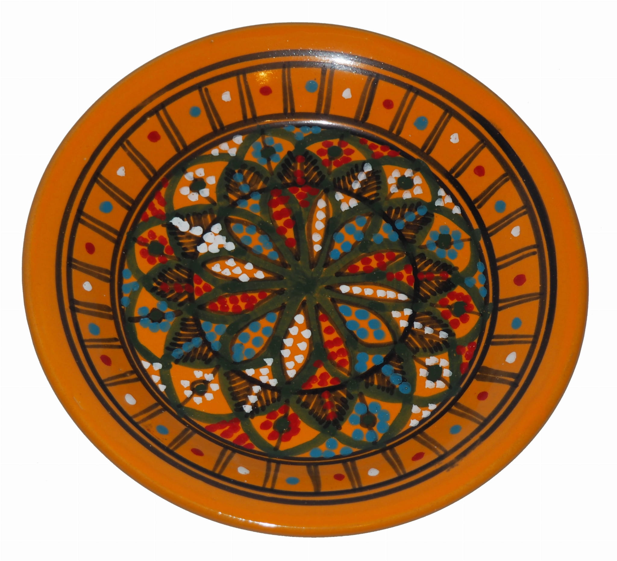 Ten orientalny talerz malowany jest w berberyjskie wzory. Przepiękna, niebanalna ozdoba Twojego stołu prosto z Tunezji.