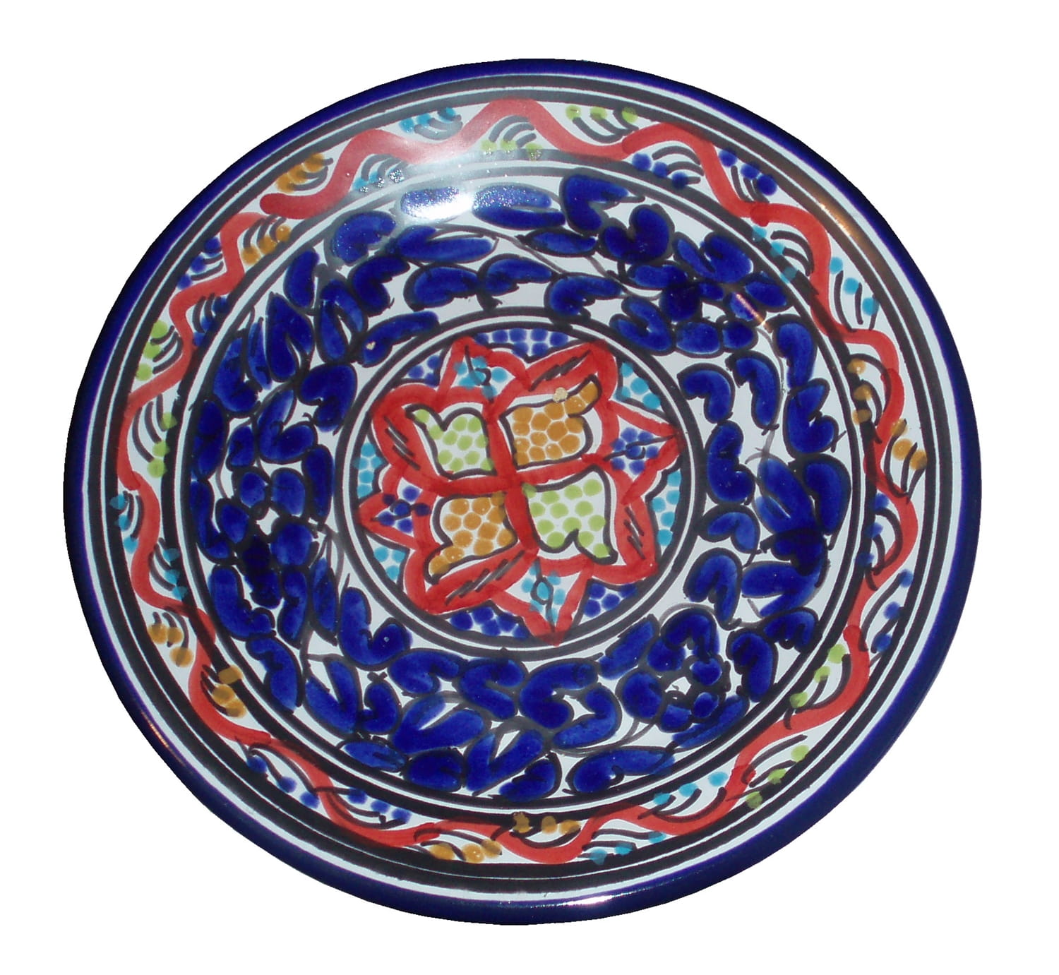 Ten orientalny talerz malowany jest w berberyjskie wzory. Przepiękna, niebanalna ozdoba Twojego stołu prosto z Tunezji.
