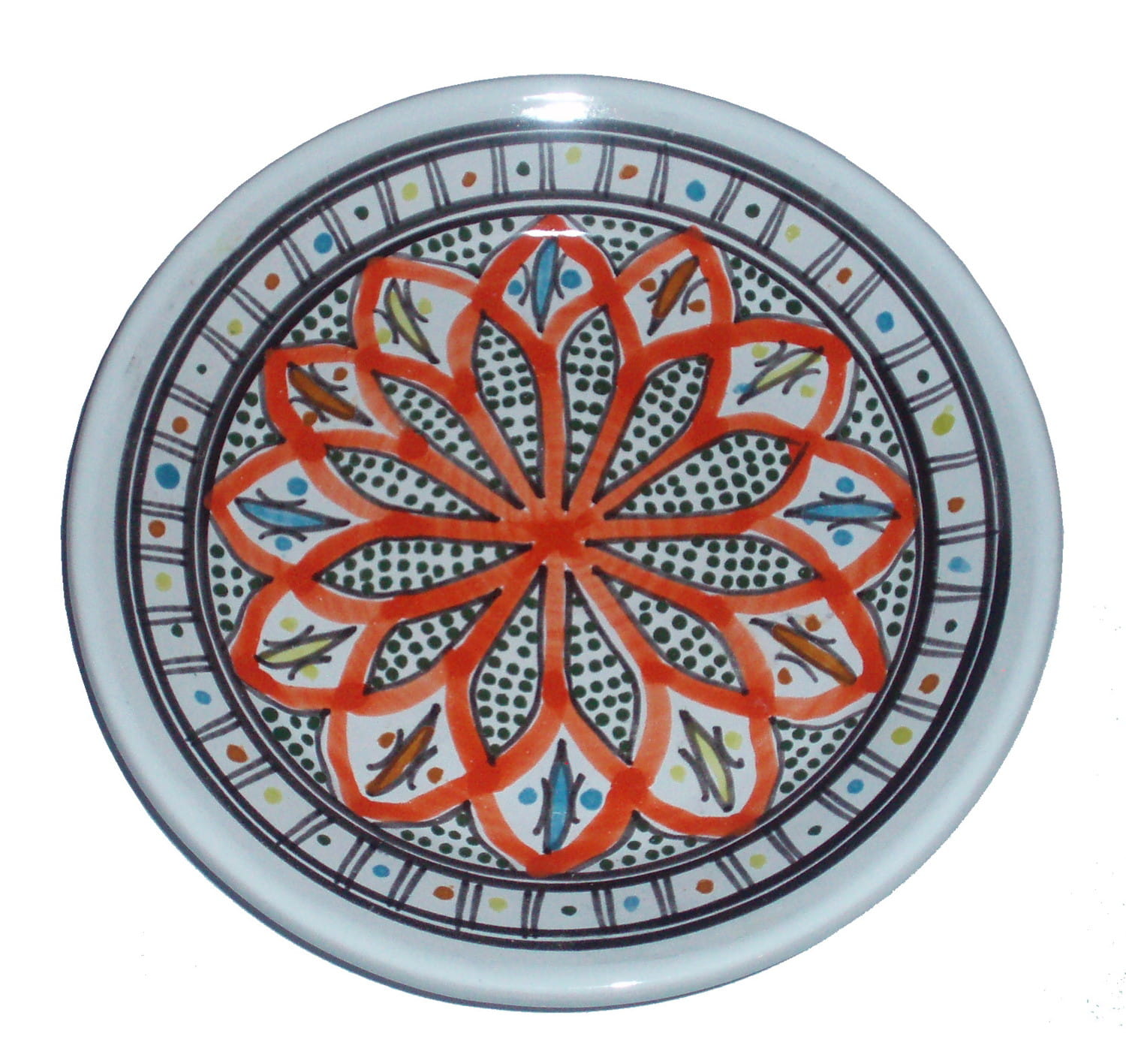 Ten orientalny talerz malowany jest w berberyjskie wzory. Przepiękna, niebanalna ozdoba Twojego stołu prosto z Tunezji.