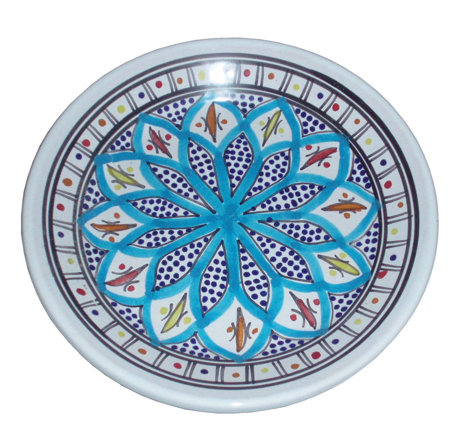 Ten orientalny talerz malowany jest w berberyjskie wzory. Przepiękna, niebanalna ozdoba Twojego stołu prosto z Tunezji.