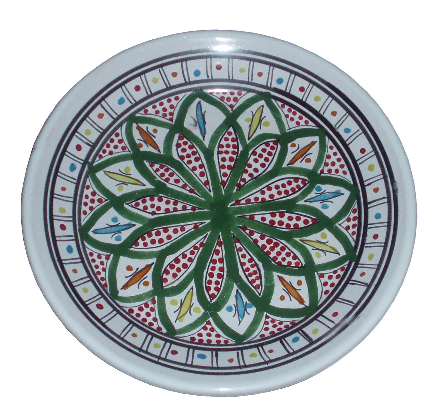 Ten orientalny talerz malowany jest w berberyjskie wzory. Przepiękna, niebanalna ozdoba Twojego stołu prosto z Tunezji.