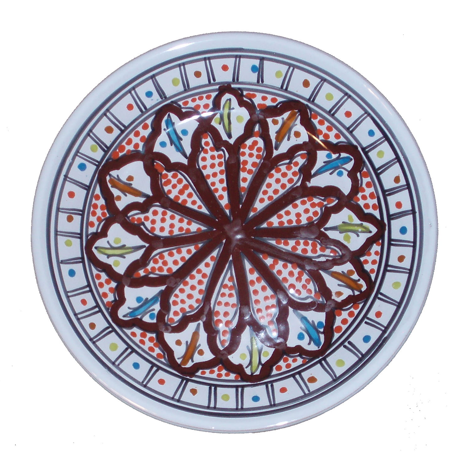 Ten orientalny talerz malowany jest w berberyjskie wzory. Przepiękna, niebanalna ozdoba Twojego stołu prosto z Tunezji.