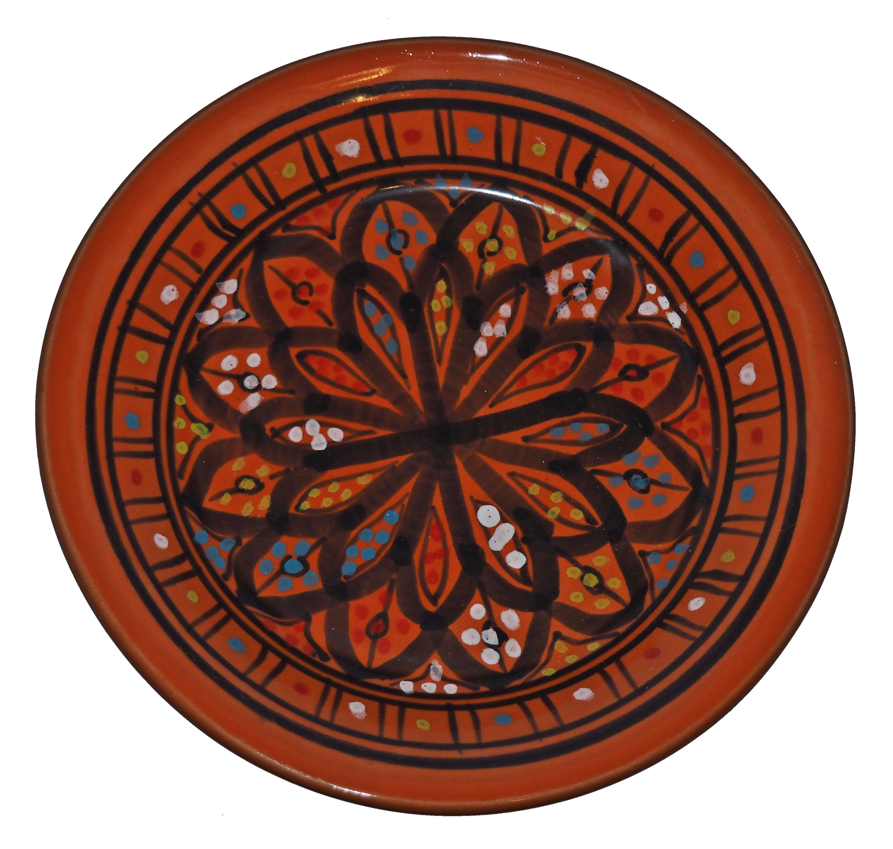 Ten orientalny talerz malowany jest w berberyjskie wzory. Przepiękna, niebanalna ozdoba Twojego stołu prosto z Tunezji.