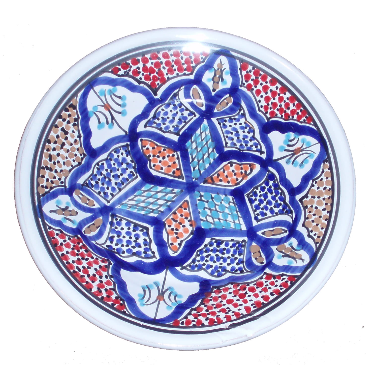 Ten orientalny talerz malowany jest w berberyjskie wzory. Przepiękna, niebanalna ozdoba Twojego stołu prosto z Tunezji.