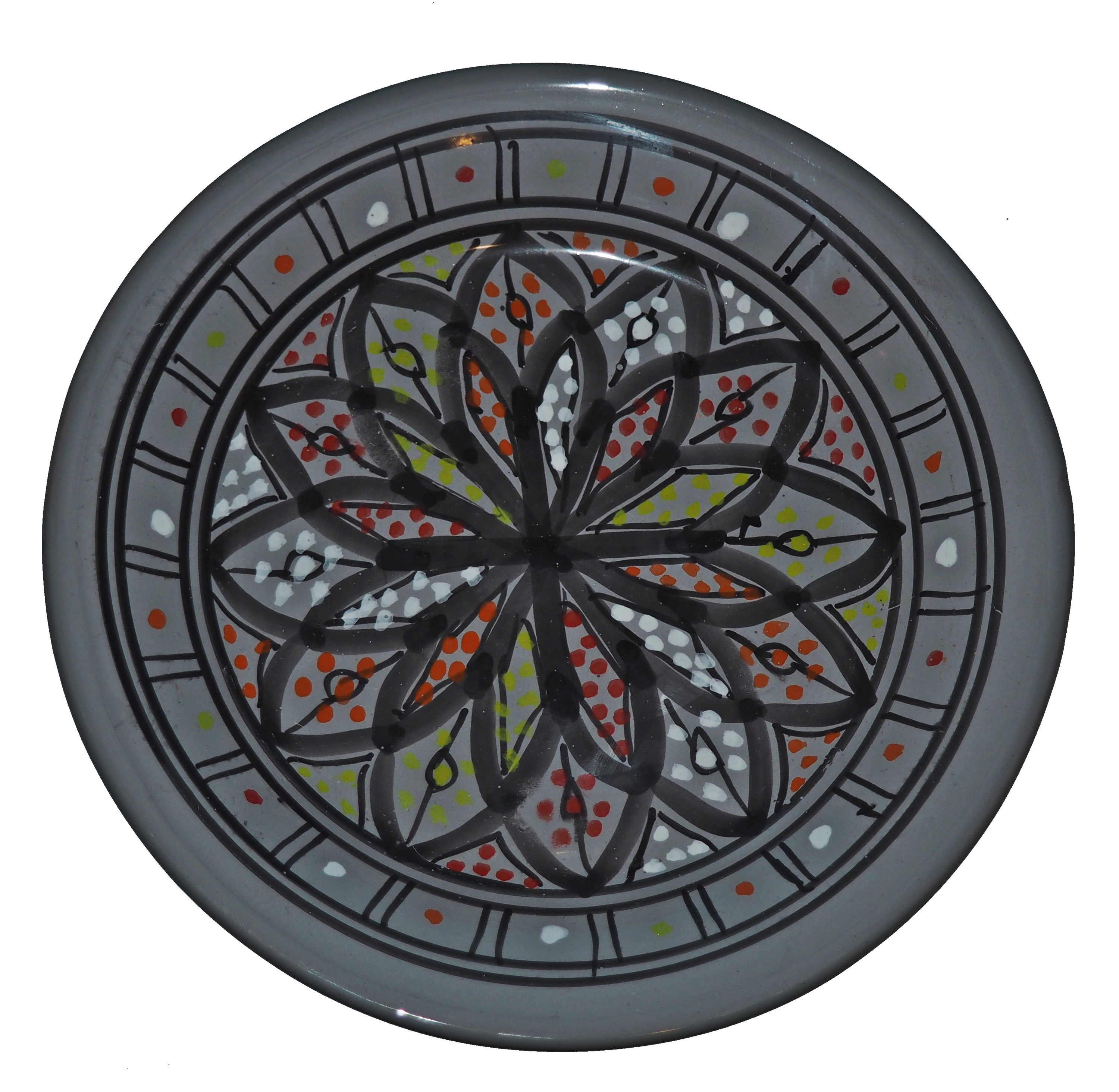 Ten orientalny talerz malowany jest w berberyjskie wzory. Przepiękna, niebanalna ozdoba Twojego stołu prosto z Tunezji.