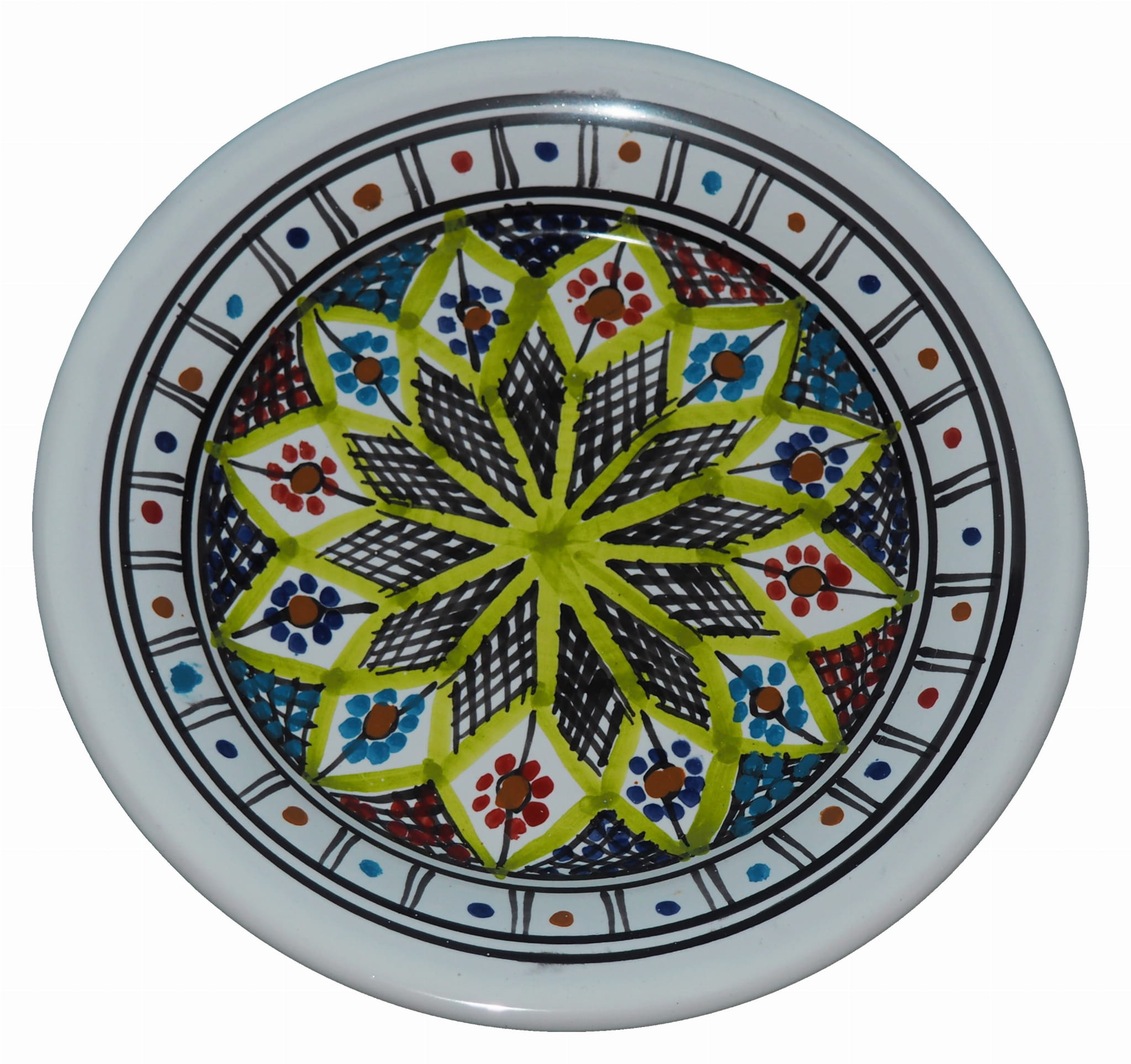 Ten orientalny talerz malowany jest w berberyjskie wzory. Przepiękna, niebanalna ozdoba Twojego stołu prosto z Tunezji.