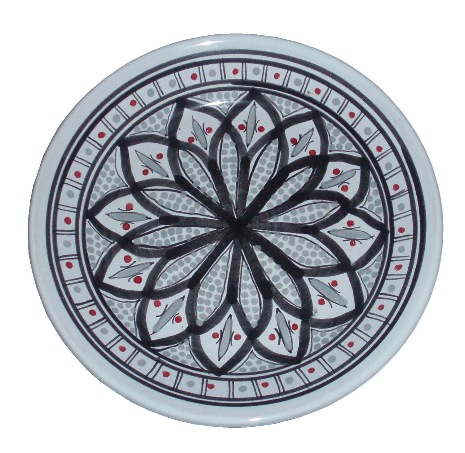 Ten orientalny talerz malowany jest w berberyjskie wzory. Przepiękna, niebanalna ozdoba Twojego stołu prosto z Tunezji.