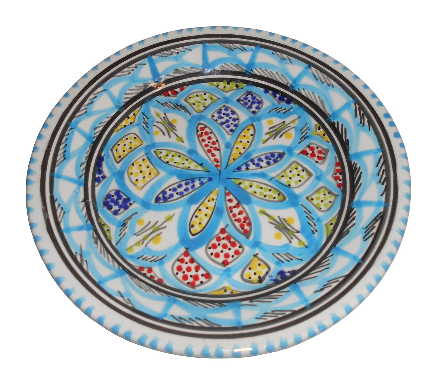 Ten orientalny talerz malowany jest w berberyjskie wzory. Przepiękna, niebanalna ozdoba Twojego stołu prosto z Tunezji.