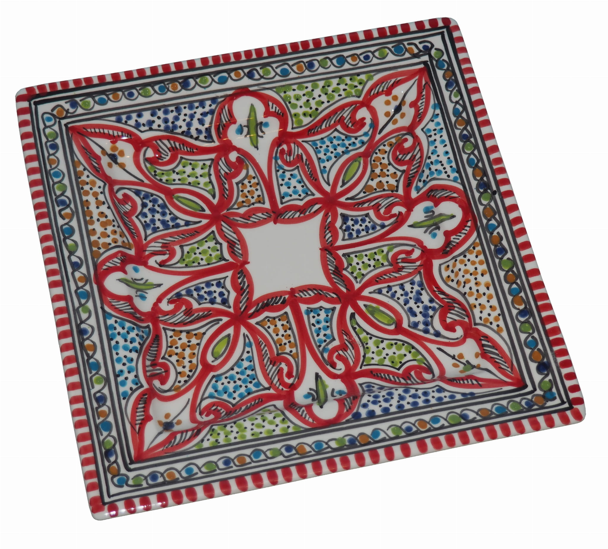 Ten orientalny talerz malowany jest w berberyjskie wzory. Przepiękna, niebanalna ozdoba Twojego stołu - ozdobny i jednocześnie funkcjonalny talerz prosto z Tunezji.