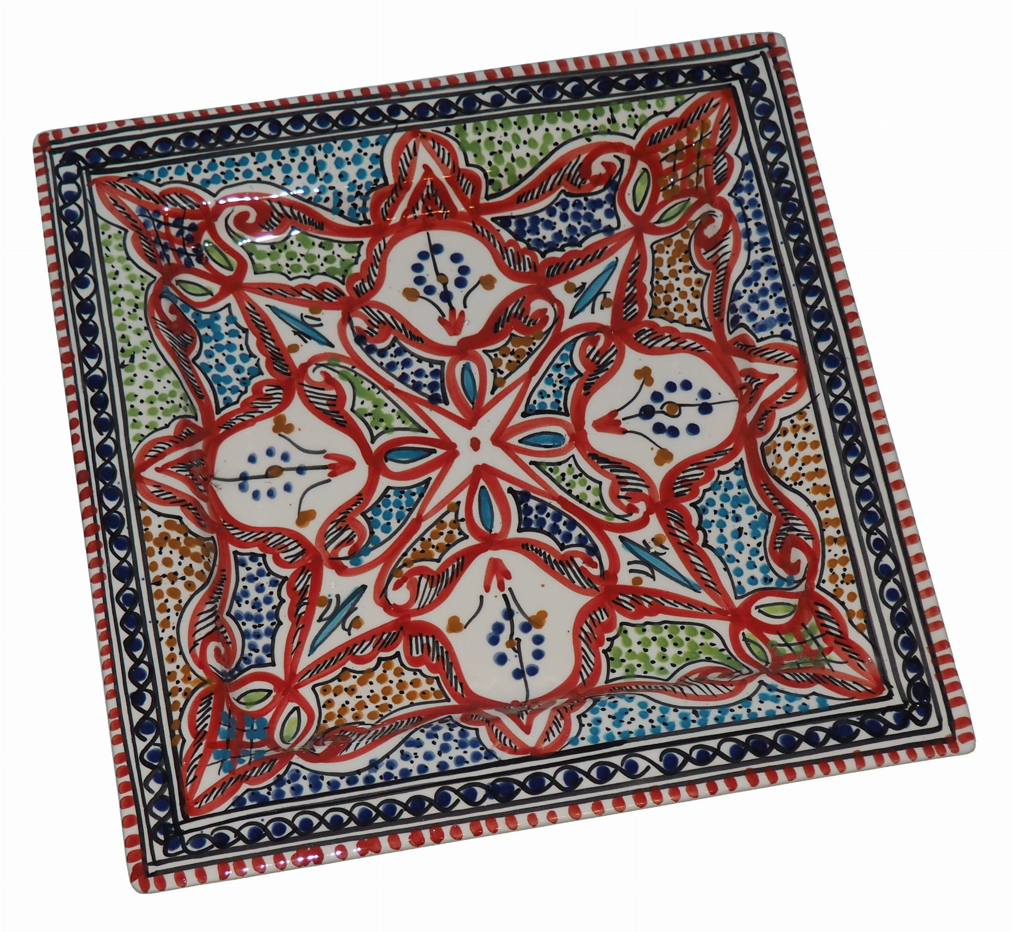 Ten orientalny talerz malowany jest w berberyjskie wzory. Przepiękna, niebanalna ozdoba Twojego stołu - ozdobny i funkcjonalny talerz prosto z Tunezji.