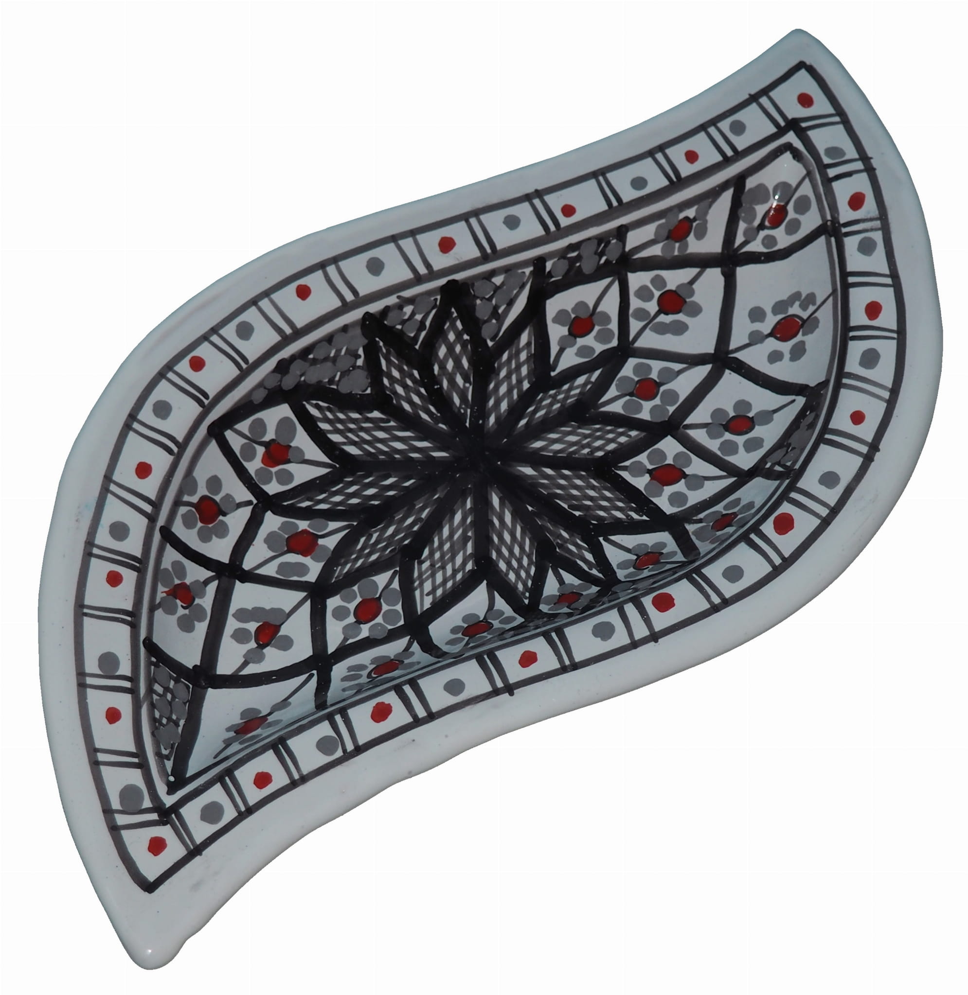 Orientalny talerzyk ceramiczny malowany jest w berberyjskie wzory. Przepiękna, niebanalna ozdoba Twojego stołu prosto z Tunezji.