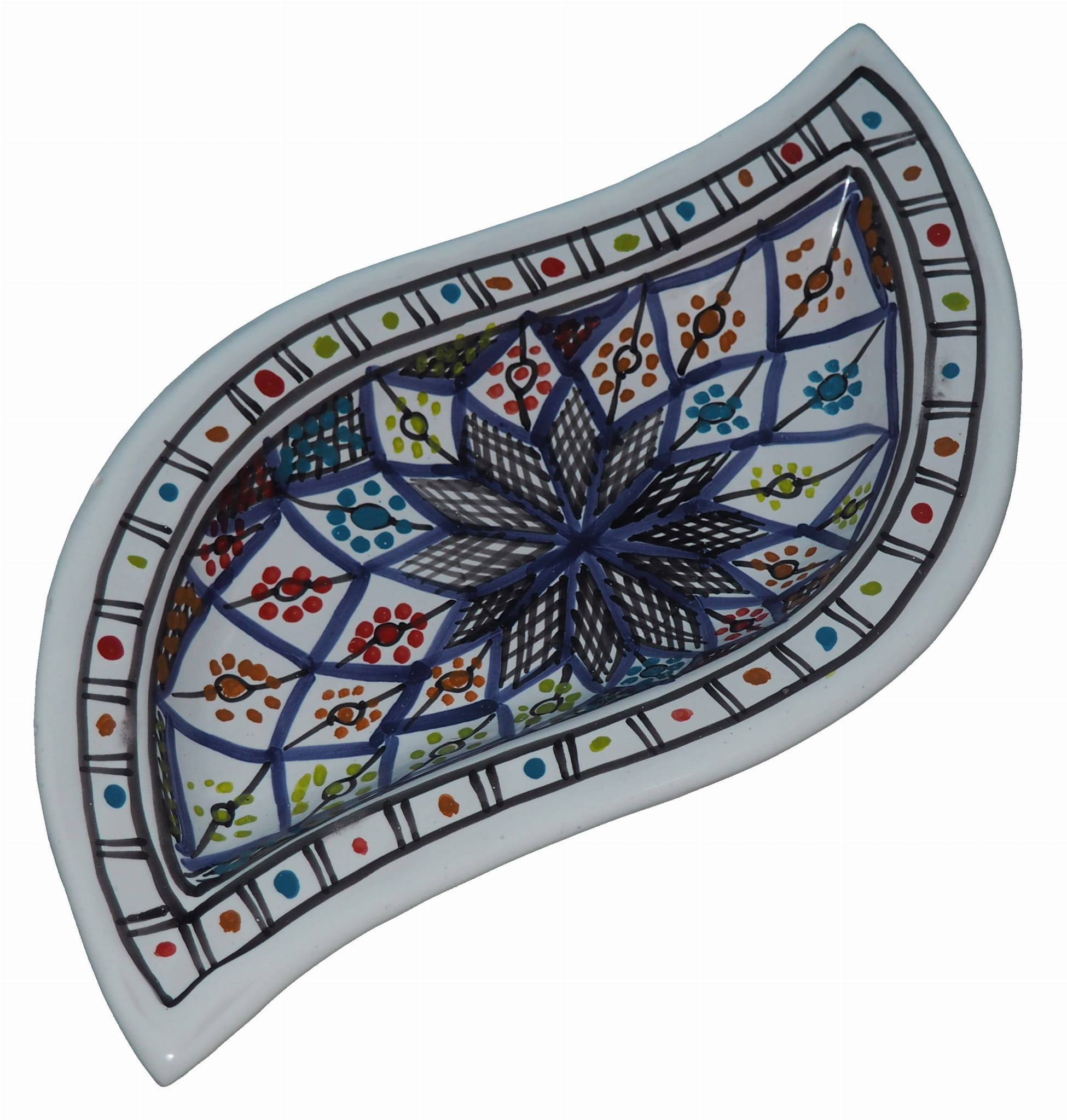 Orientalny talerzyk ceramiczny malowany jest w berberyjskie wzory. Przepiękna, niebanalna ozdoba Twojego stołu prosto z Tunezji.