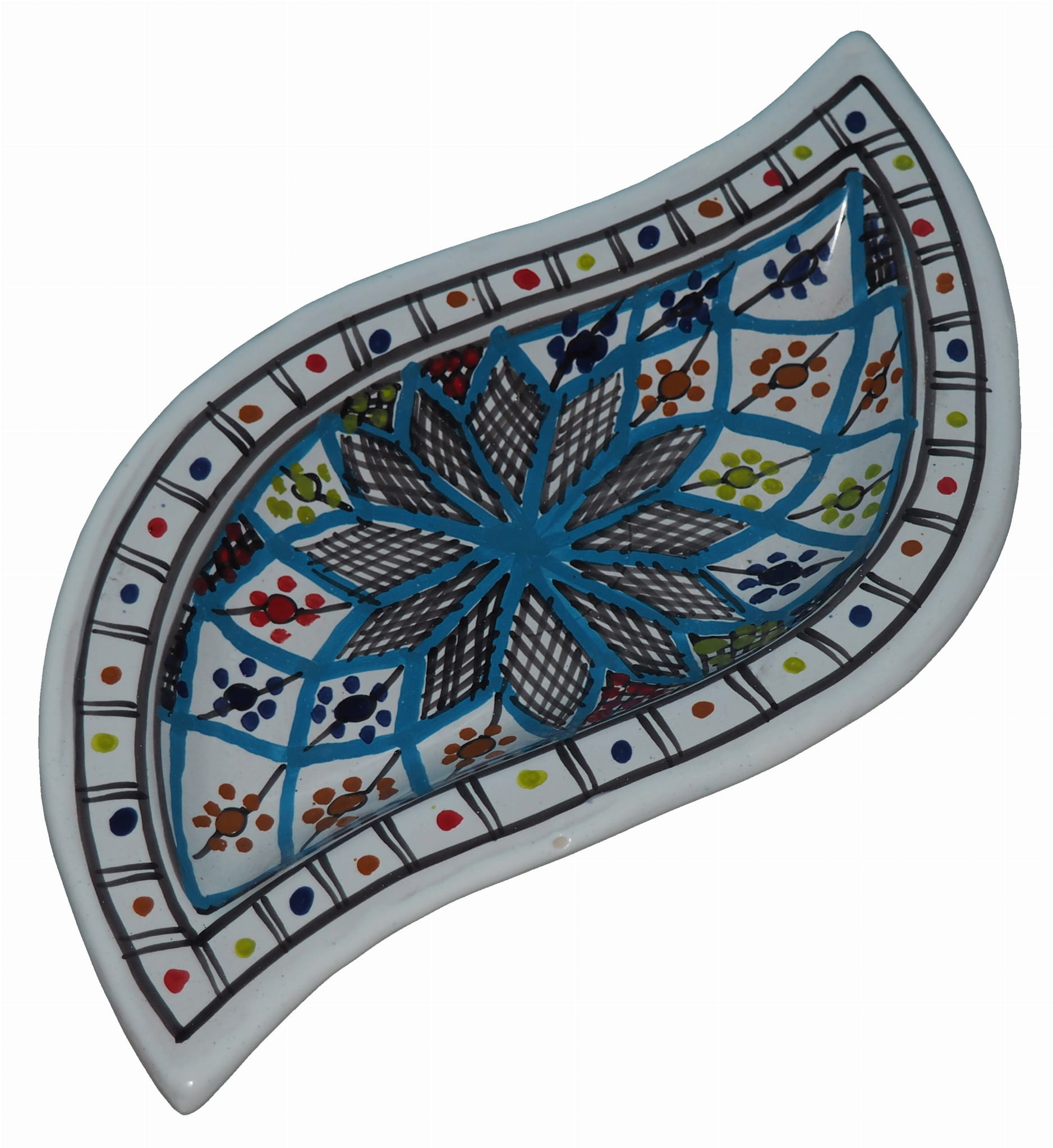 Orientalny talerzyk ceramiczny malowany jest w berberyjskie wzory. Przepiękna, niebanalna ozdoba Twojego stołu prosto z Tunezji.