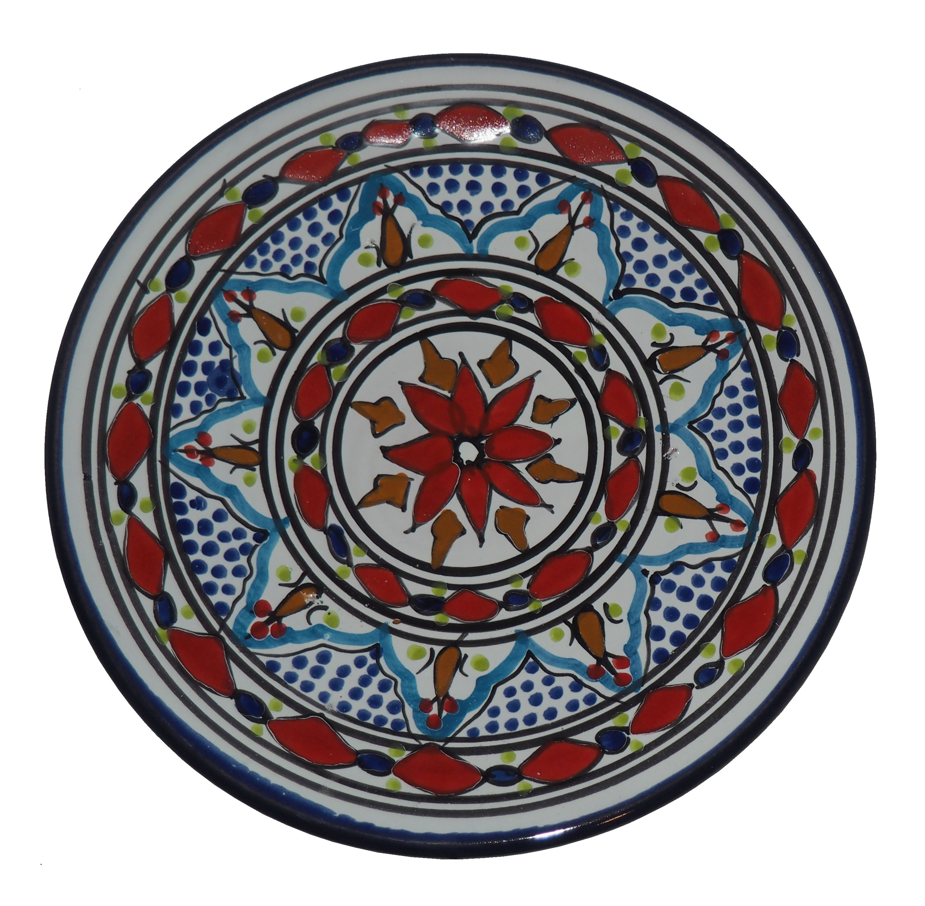 Ten orientalny talerz malowany jest w berberyjskie wzory. Przepiękna, niebanalna ozdoba Twojego stołu - ozdobny talerz prosto z Tunezji.