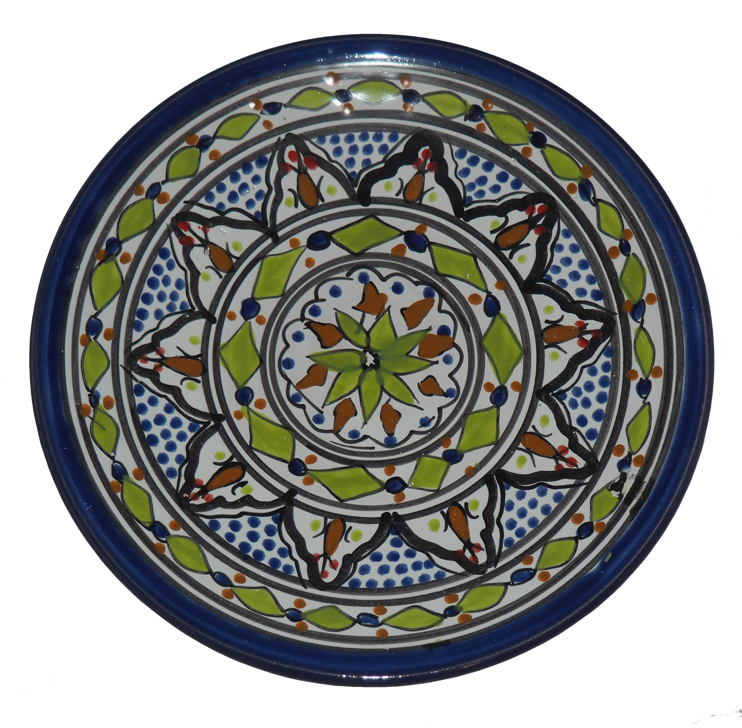 Ten orientalny talerz malowany jest w berberyjskie wzory. Przepiękna, niebanalna ozdoba Twojego stołu - ozdobny talerz prosto z Tunezji.