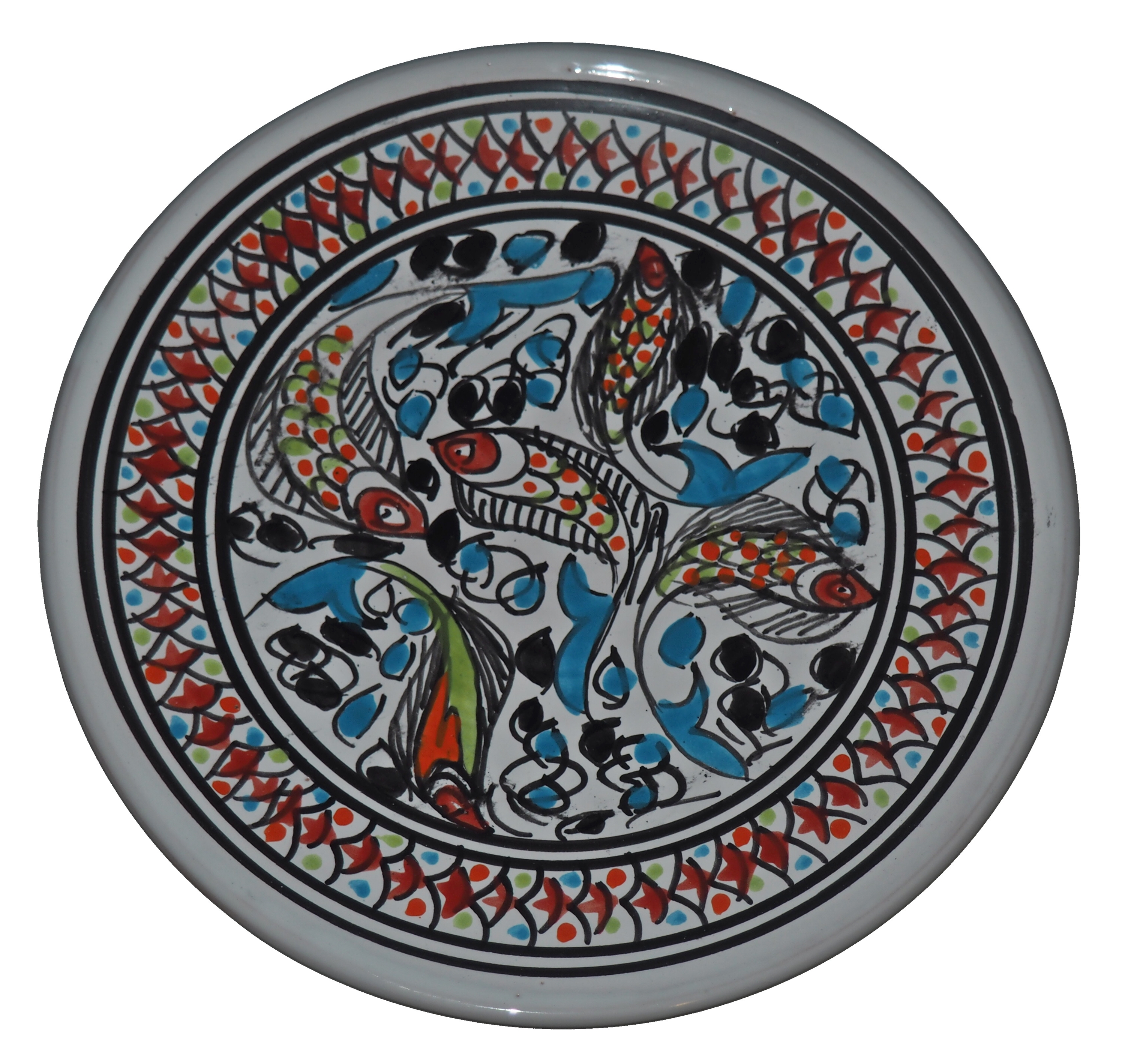 Ten orientalny talerz malowany jest w berberyjskie wzory. Przepiękna, niebanalna ozdoba Twojego stołu - ozdobny talerz prosto z Tunezji.
