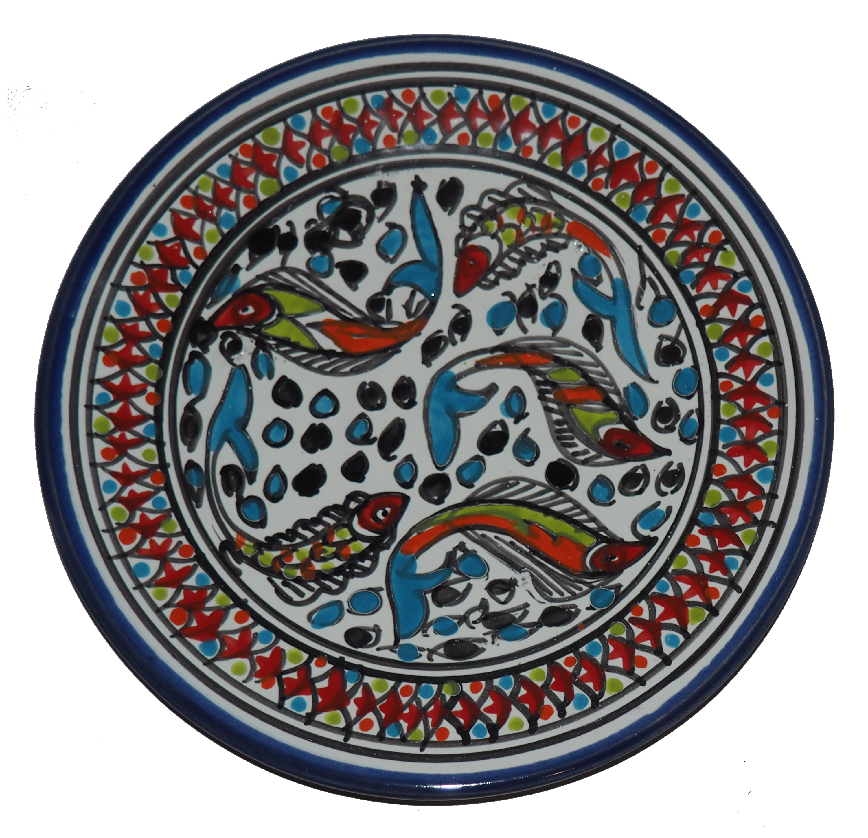 Ten orientalny talerz malowany jest w berberyjskie wzory. Przepiękna, niebanalna ozdoba Twojego stołu - ozdobny talerz prosto z Tunezji.