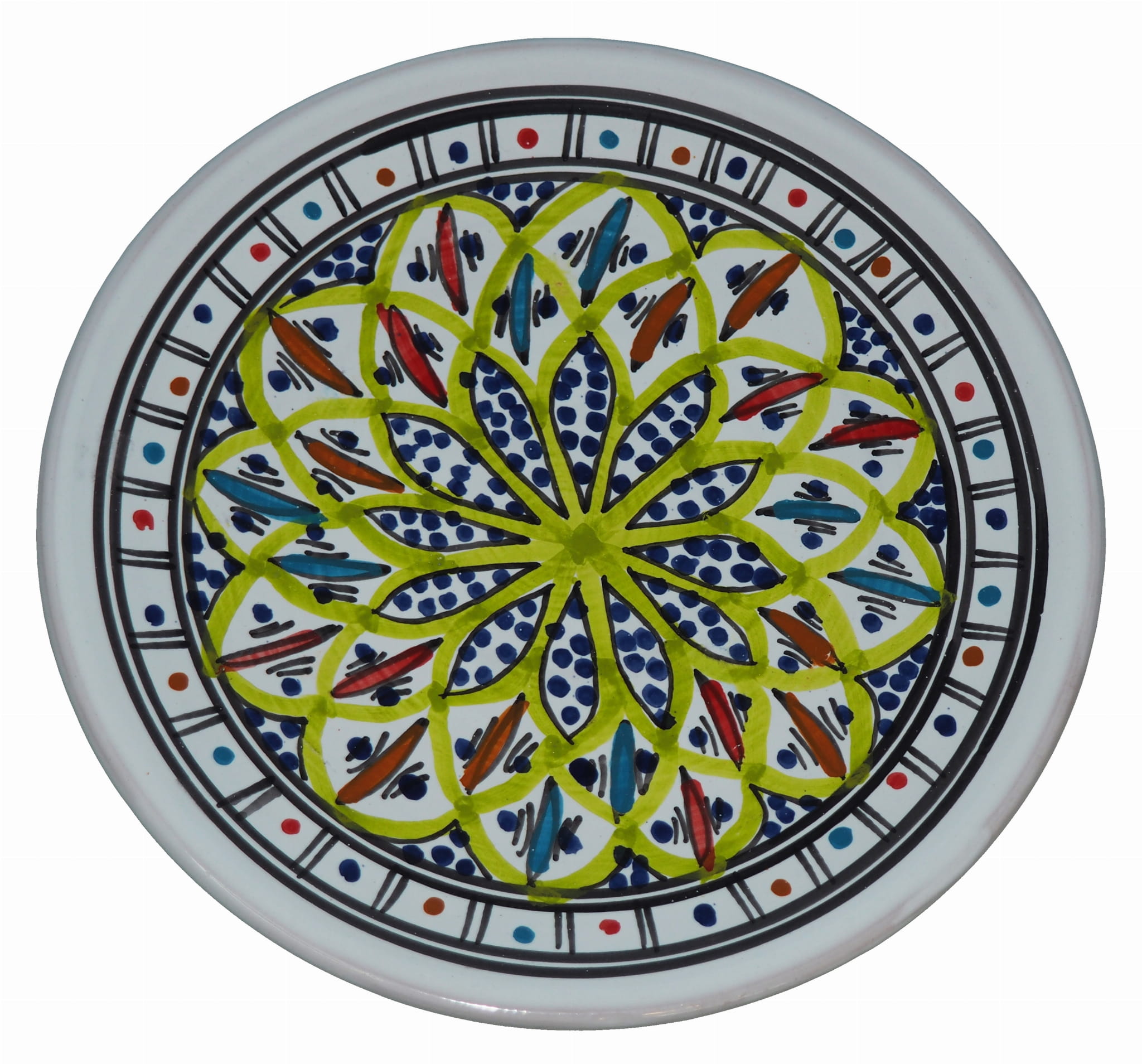 Ten orientalny talerz malowany jest w berberyjskie wzory. Przepiękna, niebanalna ozdoba Twojego stołu - ozdobny talerz prosto z Tunezji.
