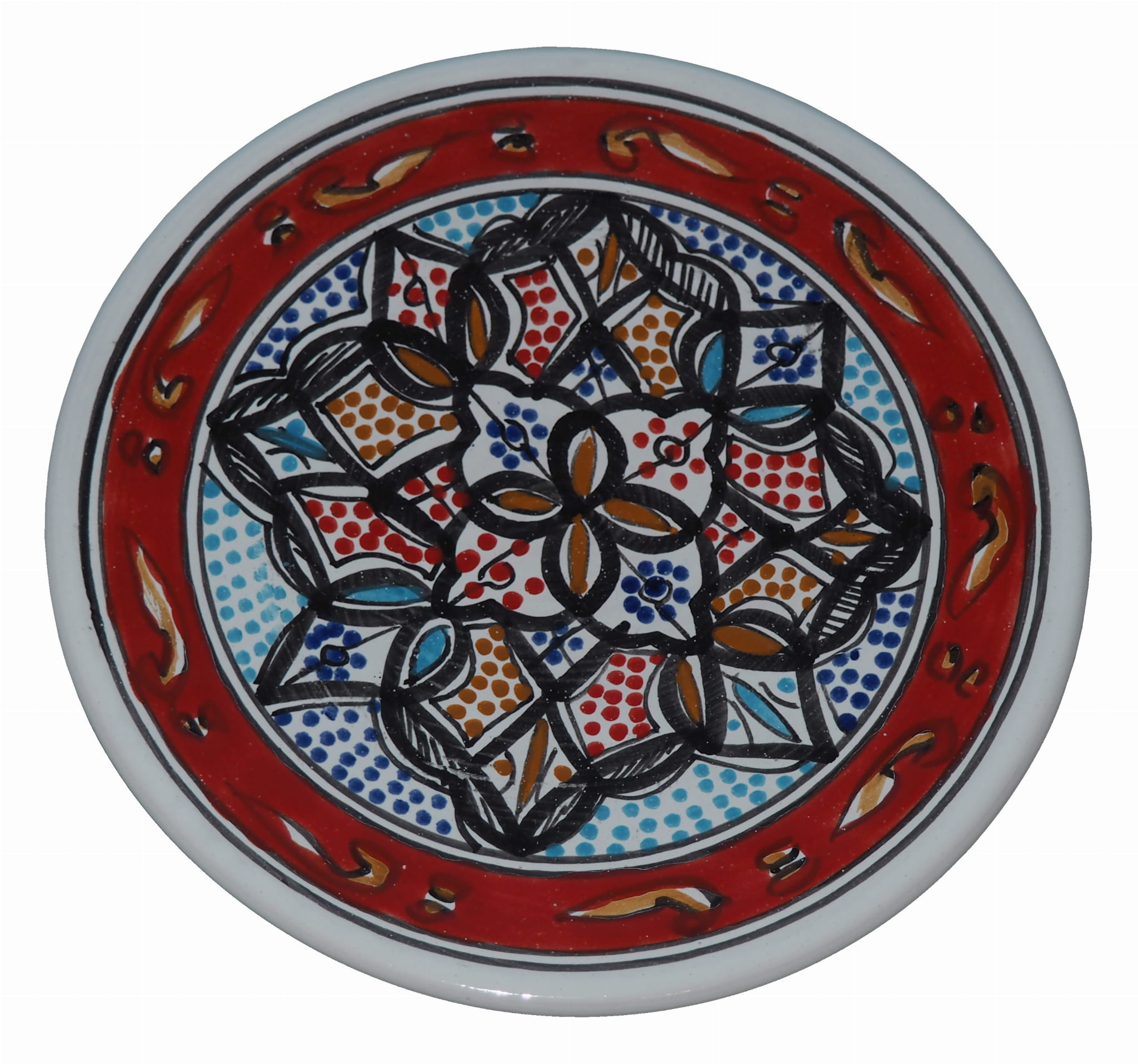 Ten orientalny talerz malowany jest w berberyjskie wzory. Przepiękna, niebanalna ozdoba Twojego stołu - ozdobny talerz prosto z Tunezji.