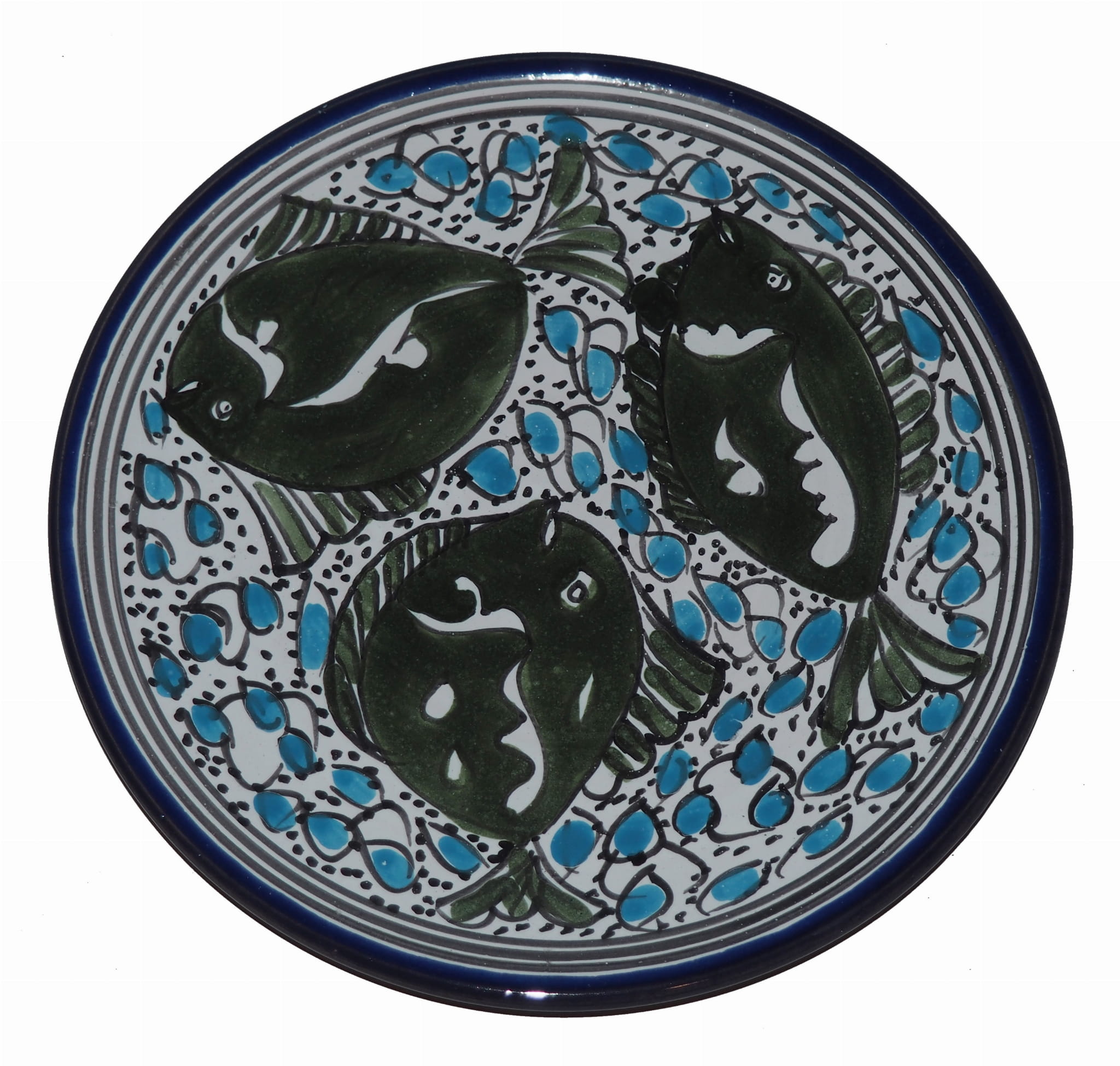 Ten orientalny talerz malowany jest w berberyjskie wzory. Przepiękna, niebanalna ozdoba Twojego stołu - ozdobny talerz prosto z Tunezji.